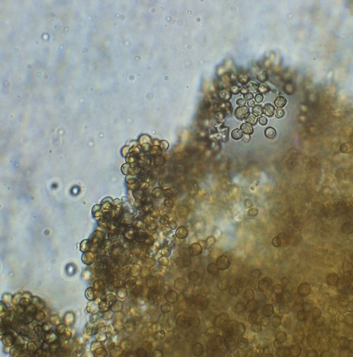 sporen rund, braun, ziemlich klein, 2-3,5 µm