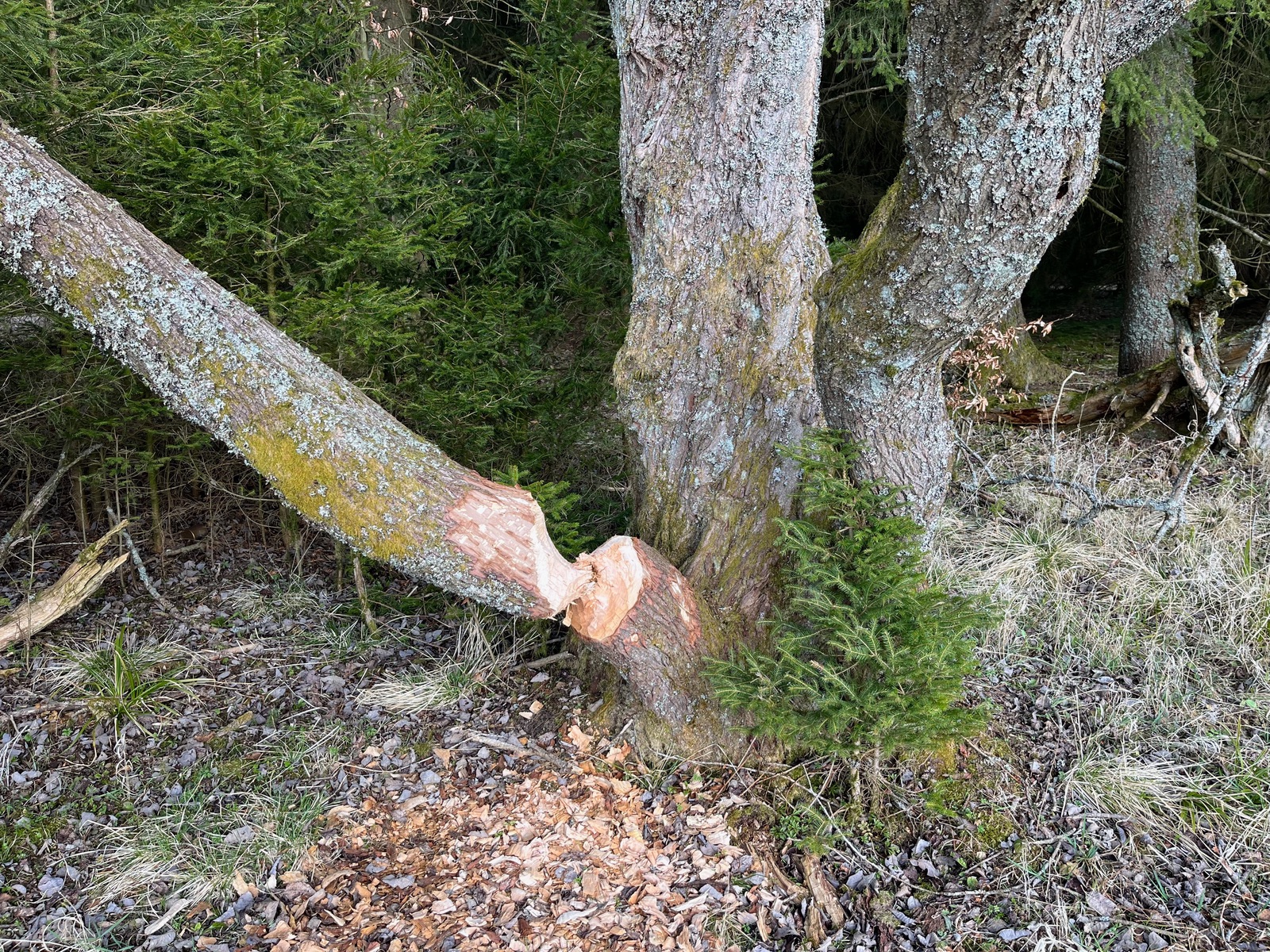 4. Nicht nur kleine Bäumchen, sondern auch kapitale Baumstämme sind Opfer der scharfen Biber-Nagelzähne geworden.