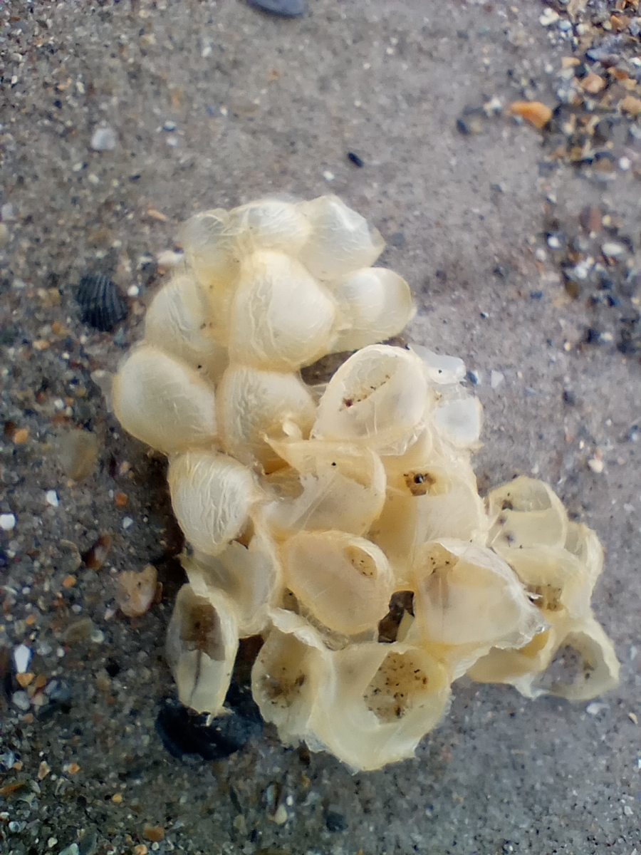 war vielleicht ein Stand in der Nähe? Ich tippe auf Eiklumpen der Wellhornschnecke.