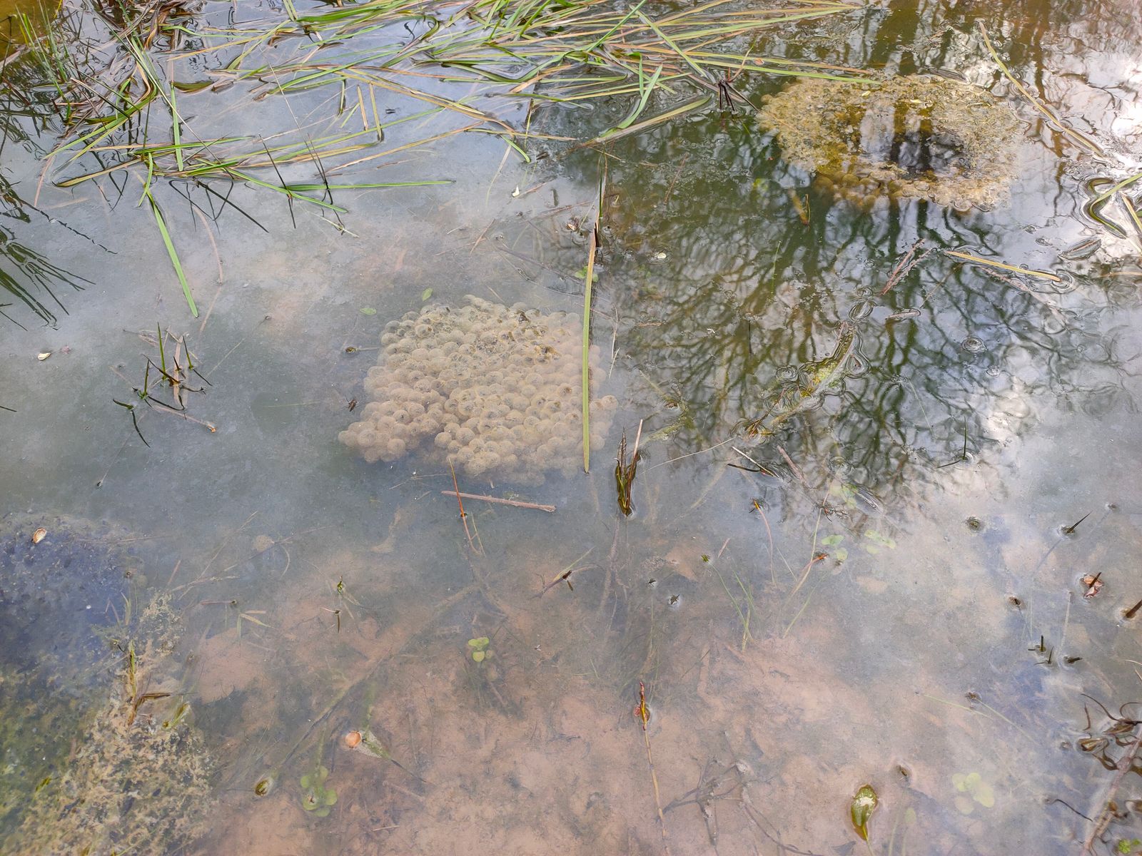 • Aus dem Laich haben sich Kaulquappen entwickelt und ich konnte aus der Ferne mehrere kleine Frösche abtauschen sehen.
