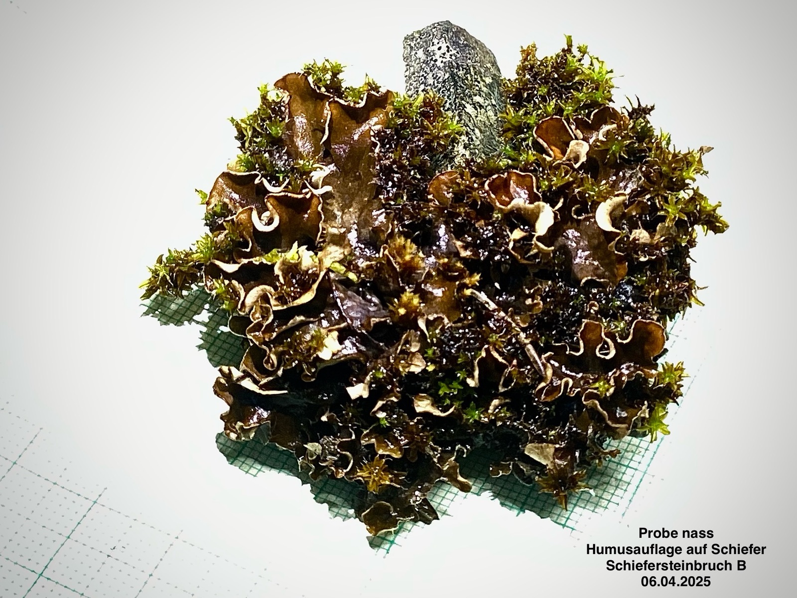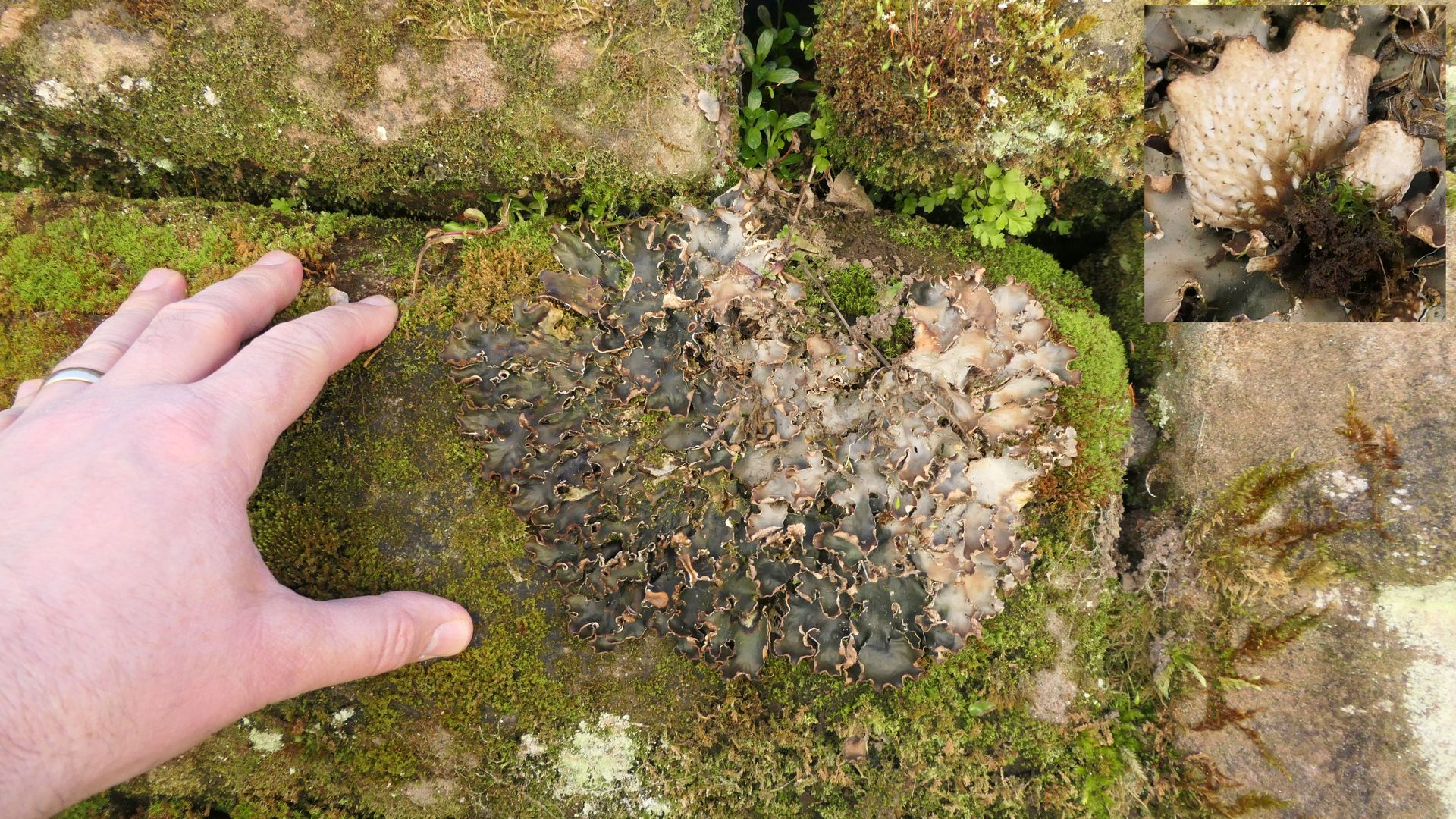 gestern war ich im Schwarzwald unterwegs und bin dort an einer schattigen, bemoosten Silikatmauer am Wegrand auf zahlreiche Peltigeren gestoßen - so viele, dass ich nach wenigen Metern mental überlastet und nicht mehr aufnahmefähig war. Man schaut gar nicht mehr richtig hin und bereut natürlich gleich wieder. In einer kleinen, unbenutzen Parkbucht dann sogar drei Arten direkt nebeneinander. Etwas weiter oben am gleichen Weg war eine schwach bemooste Gartenmauer ähnlich dicht bewachsen, bis über die Kante auf die stark besonnte Horizontalfläche, neben der Kalksplitt ausgebracht war (vorletztes Bild). Aber auch P. neckeri und P. collina wachsen dort sogar am Rand des Kalksplitts...