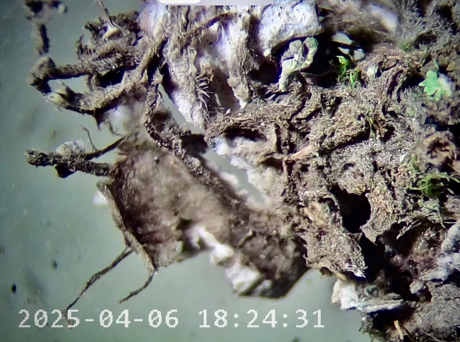 Bild B2 Winzige Isidien / Phyllidien am Thallusrand, unterschiedliche Rhizinen (auffaserndes, dunkles Rhizinenbüschelchen unscharf links) => also verm. doch Peltigera praetextata