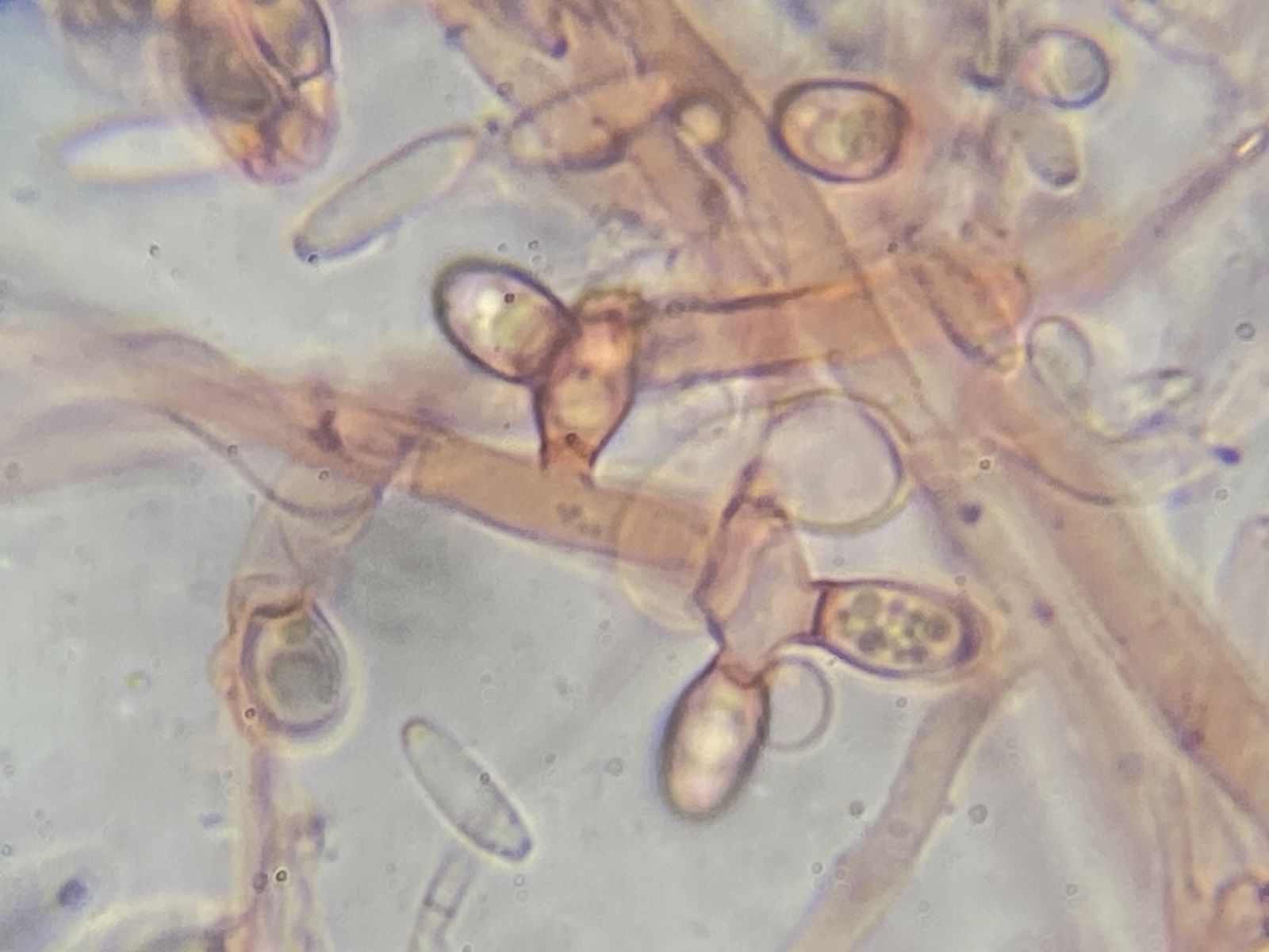 1) Vielgestalige Konidien kugel-, oval- oder zitzenförmig (globose, subglobose, ovoid, obovoid, pyriform, papillate); inamyloid; ca. 15-20 x 10-15 µm, hyalin; an kurzen Hyphen; keine weiteren Strukturen vom Hyphensystem.