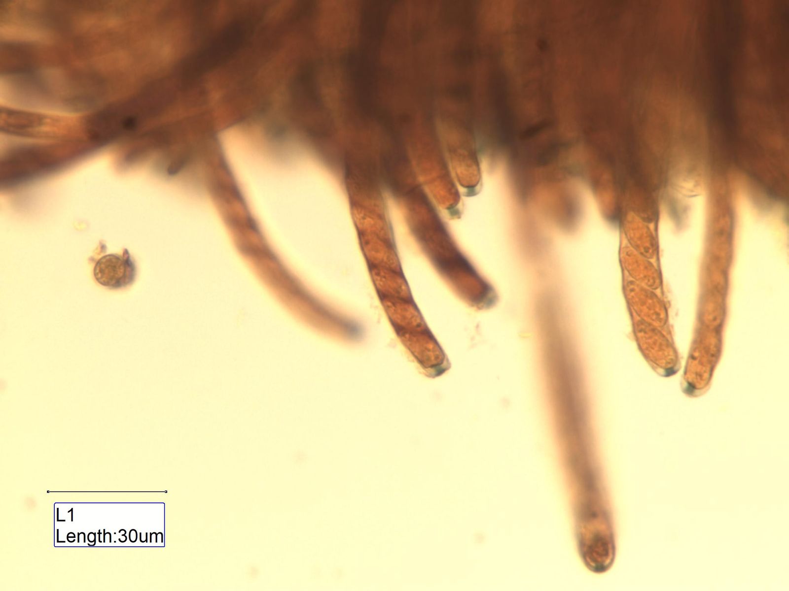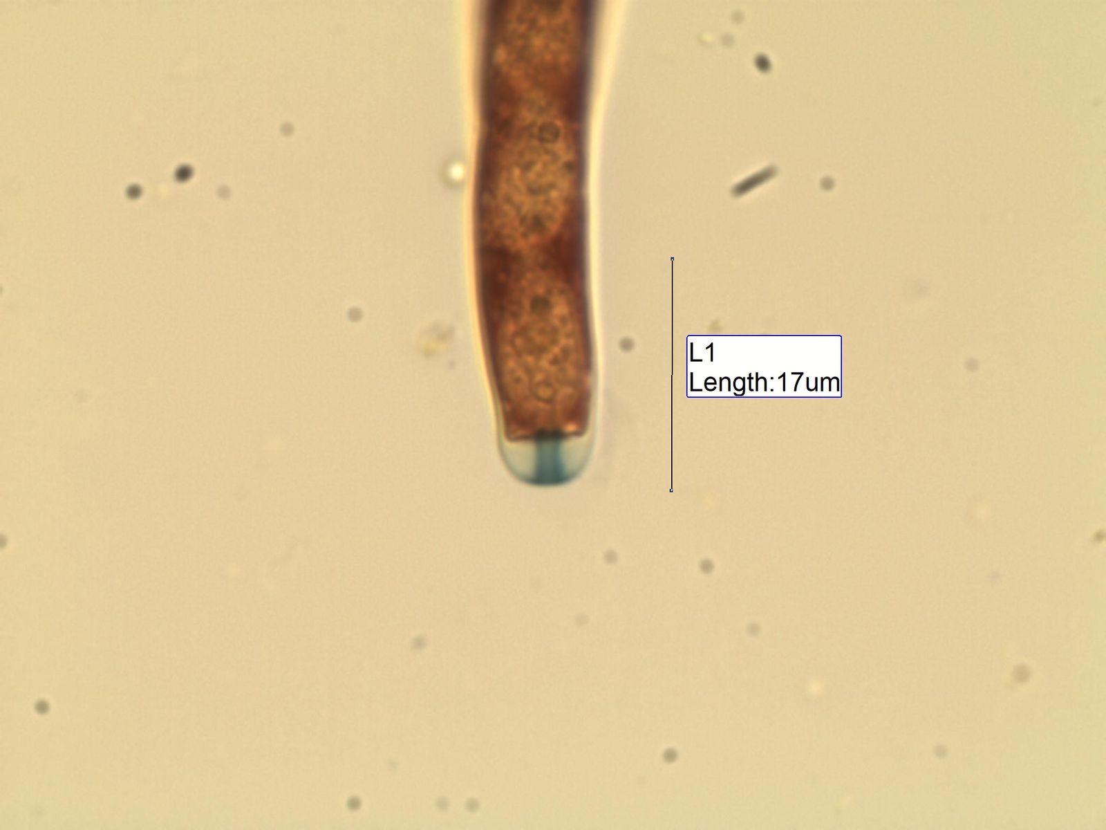 Mit Lugol unter dem Mikroskop kann man bei der Art sehr schön die blauen
