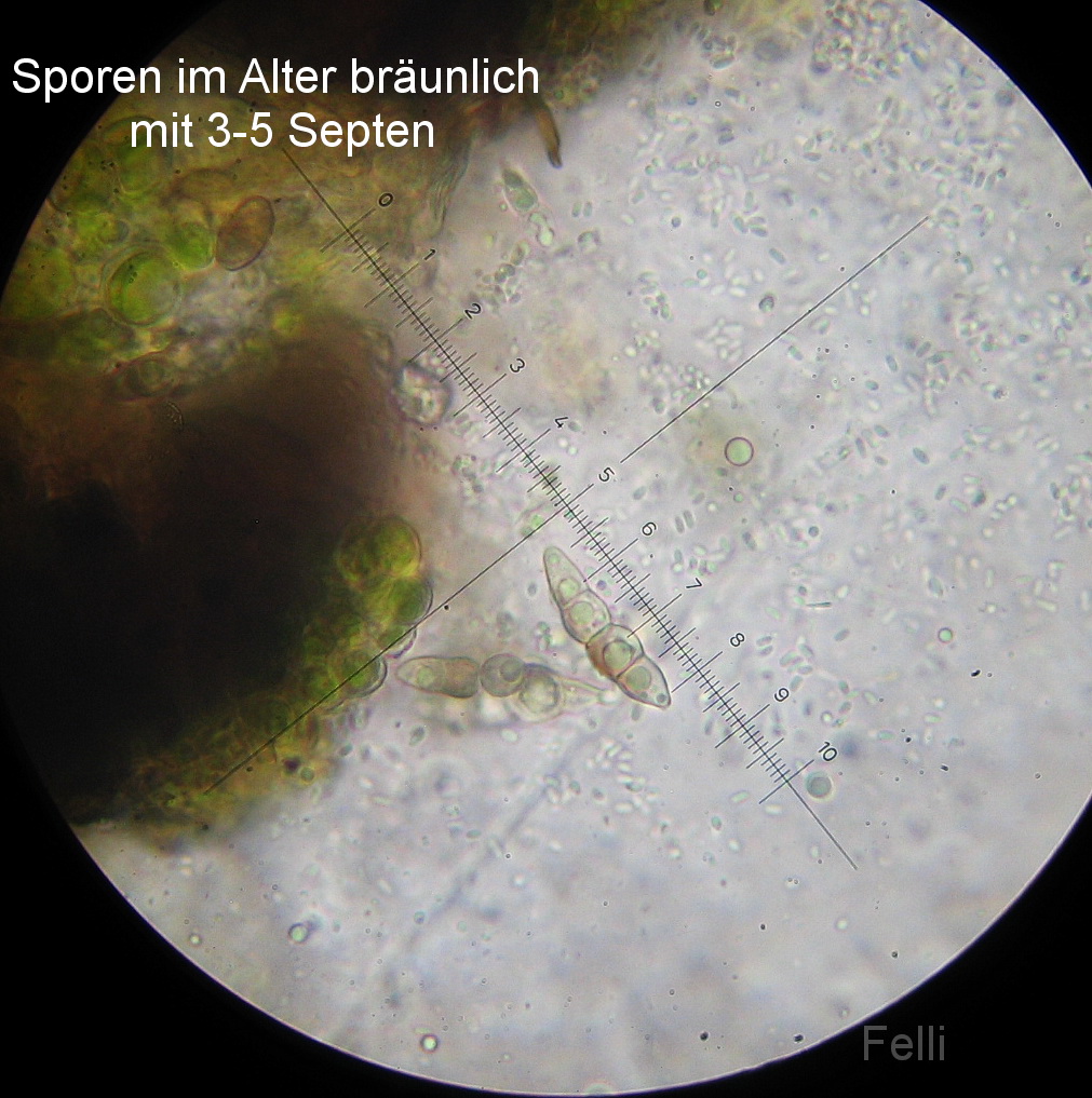 Sporen 27-29 x 6-7µ, mittig eingeschnürt, hyalin mit 1 Septe,