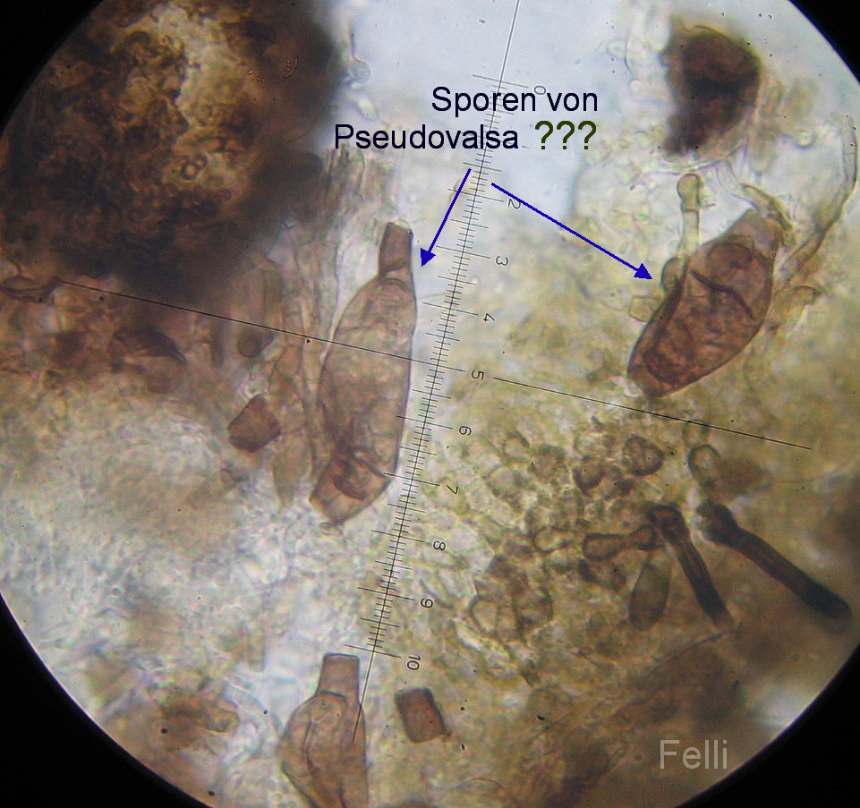 Ich denke - das hier sind Fremdsporen von einer Pseudovalsa oder Ähnlichem