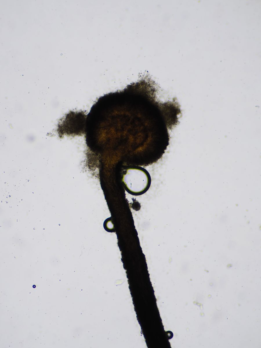 in Rindenrissen einer alten Eiche fand ich bei einem der letzten Familienausflüge eine Stecknadelflechte mit einem für die Gruppe extrem langen Stiel und kugelförmigem Mazaedium. Der Stiel war ca 4-10x so lang wie der Kopfdurchmesser, was bereits mit blossem Auge zu sehen ist. Unter der Lupe ist zu erkennen, dass sowohl der mint-grüne Thallus als auch die gesamten Fruchtkörper feinmehlig bereift sind. Bernd hatte sie vor einiger Zeit mal als typischen Bewohner von Wurzeltellern umgestürzter Nadelbäume vorgestellt. An solchen hatte ich bisher aber nie Glück, sodass ich dann etwas erstaunt war sie an Eiche zu finden. Das dürfen sie aber je nach Literatur durchaus. Sporen (sub)globos (2.3) 2.4 - 2.8 (3.1) × 2.15 - 2.7 (3) µm Q = 1 - 1.17 ; N = 25. Asci konnte ich keine (mehr) finden. Italic führt die Art unter Coniocybe furfuracea (L.) Ach.