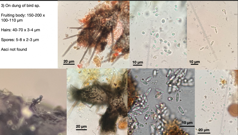 Perithecium with shorter stiff hairs and long necks, found on dung of an unknown bird