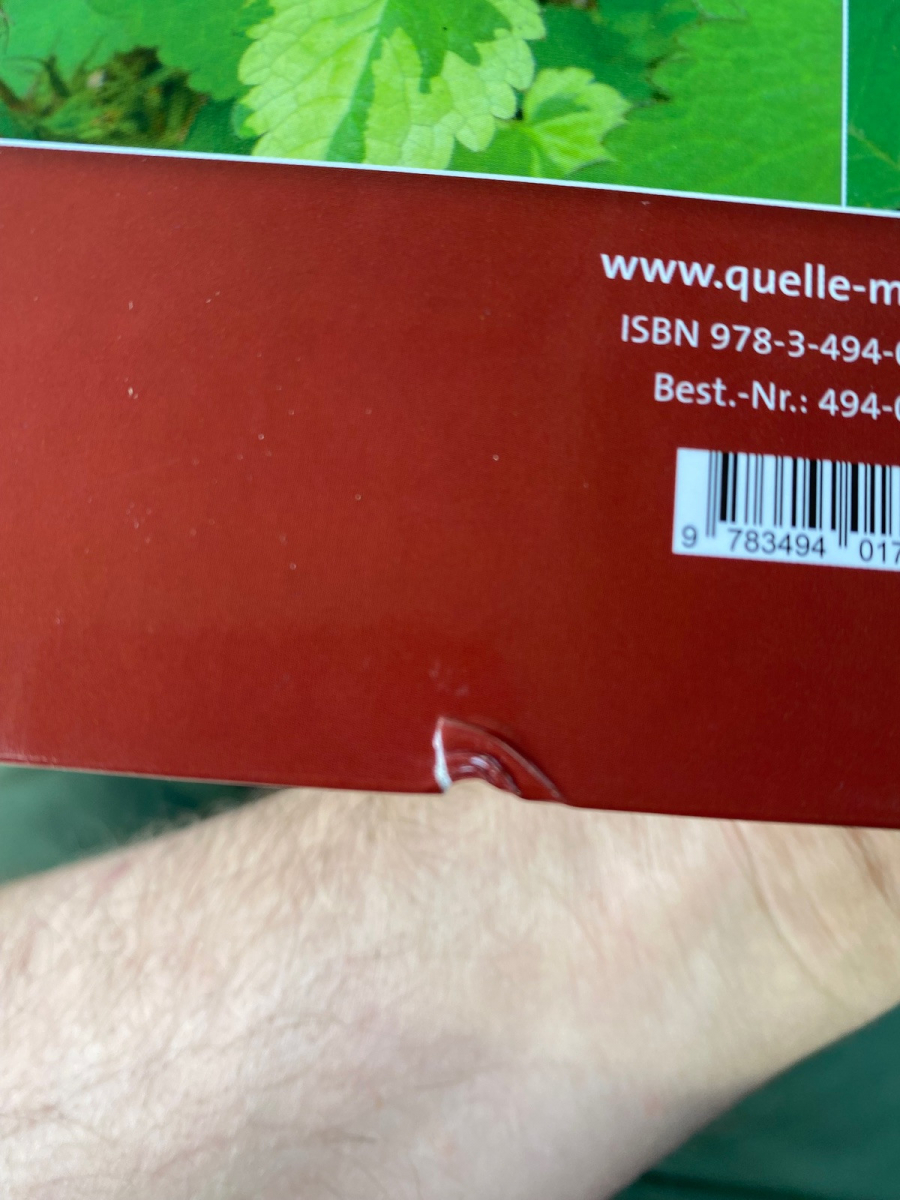 Und auch vielen Dank für den Link, ich habe da drüber viel Geld gespart. Ich habe unten mal ein Bild angefügt, warum das Buch ein Mangel Exemplar ist. Da ist eine kleine Macke am Einband. Das stört mich nun überhaupt nicht, da ich die Bücher eh immer im Feld viel dabei habe.