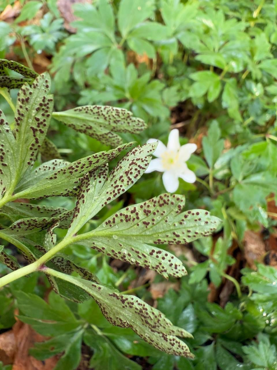 Weiterer Rostpilz, derzeit in Oldenburg häufig auf Buschwindröschen.
