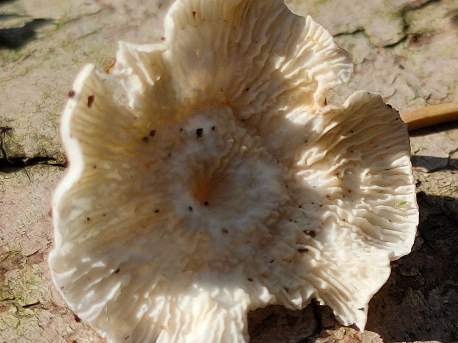 Hallo Michael, es spricht viel Plicatura crispa, danke. Ein einzelnes fast weißes Exemplar, zentral gestielt, abgestürzt. Das war halt etwas unglücklich ^^