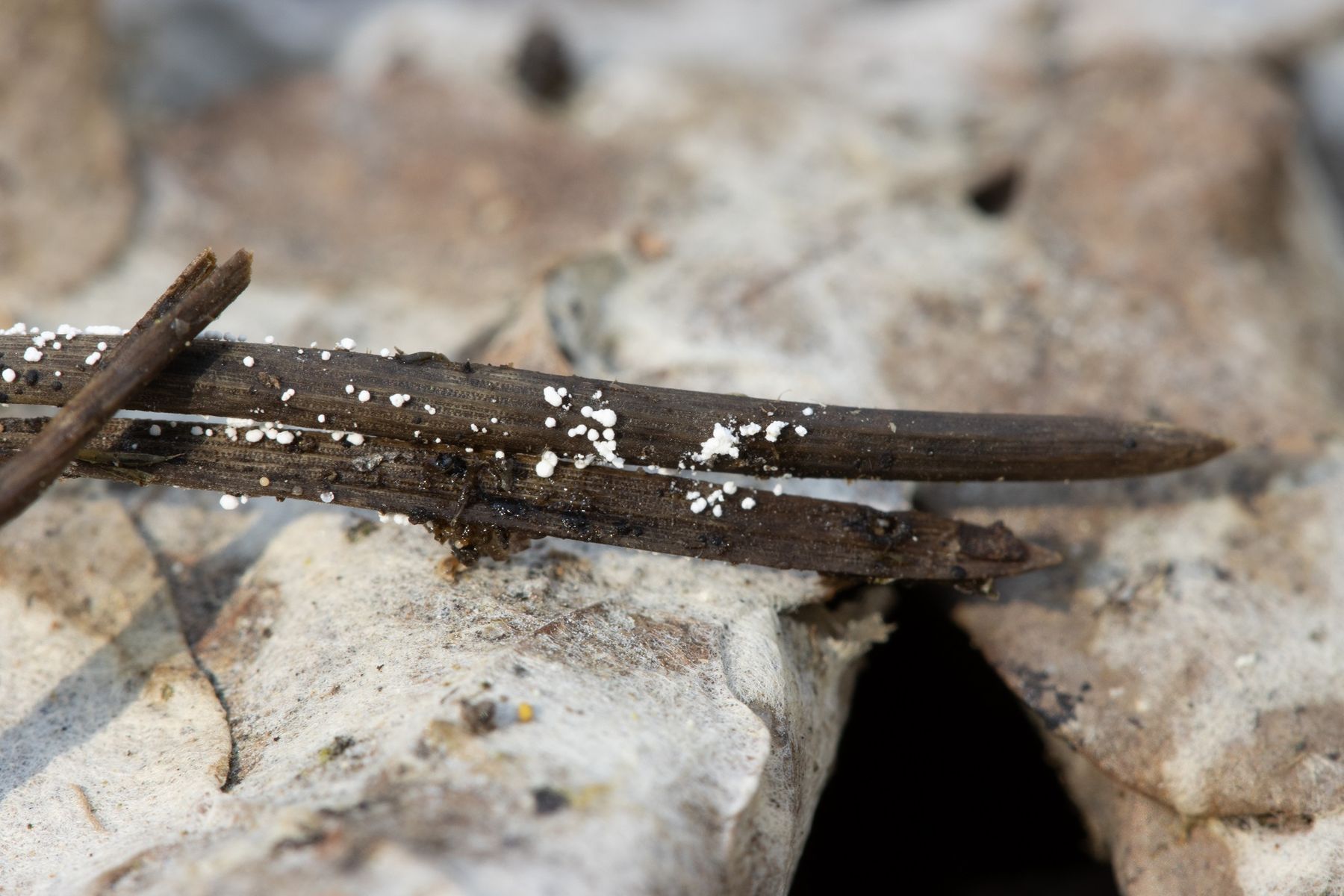 Dort konnte ich eine weiße Anamorphe auf Kiefernnadeln finden, die ich noch nicht kenne.