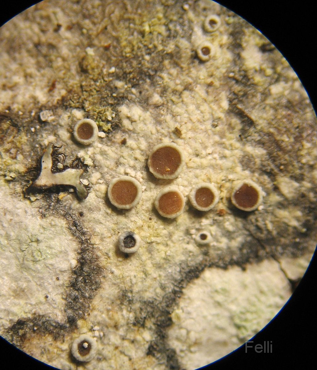 relativ kleine hellbraune Apothecien mit deutlichem Rand