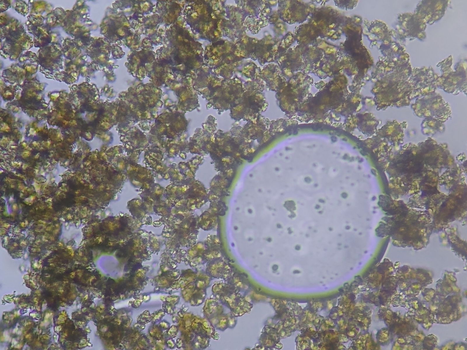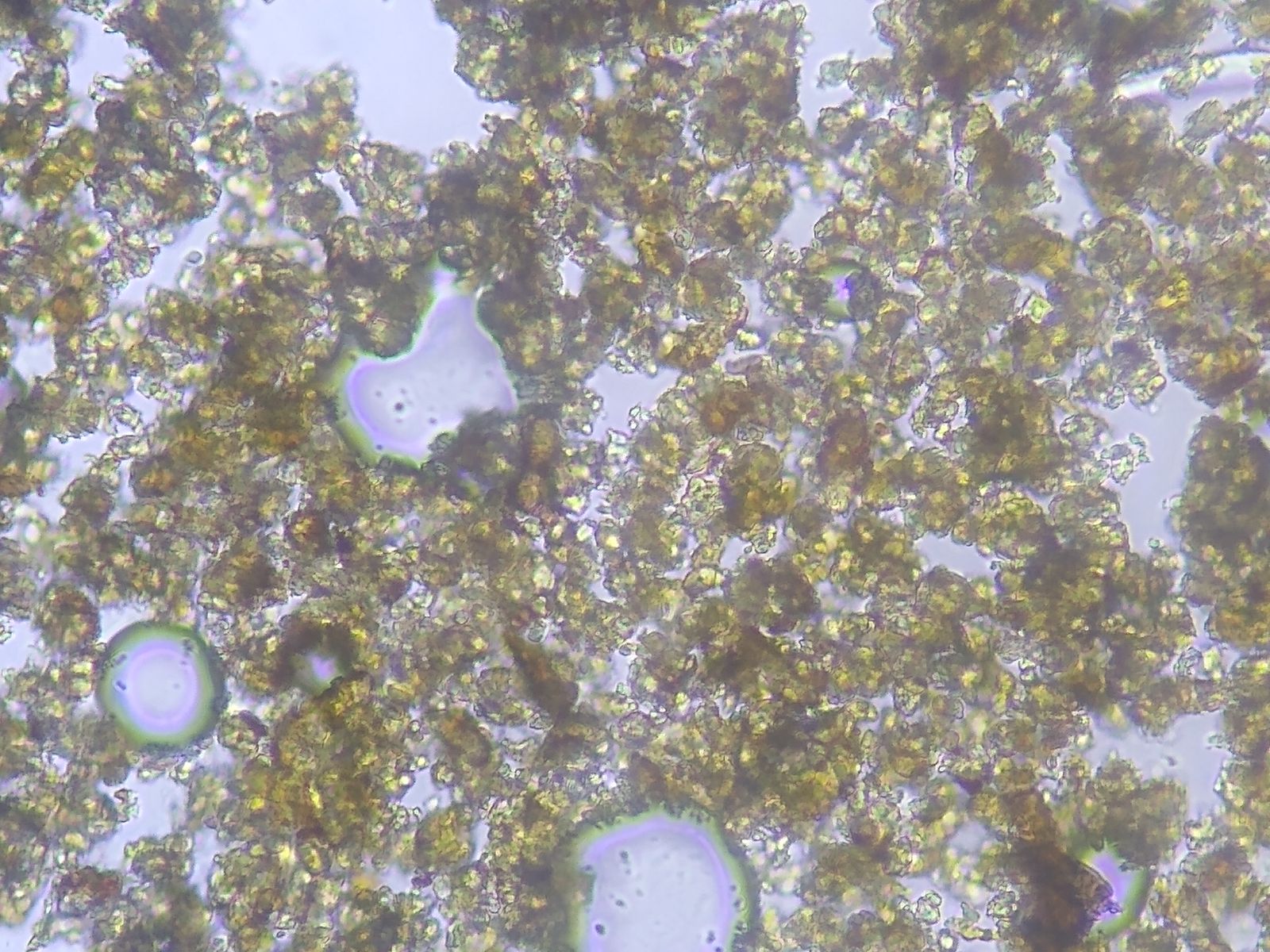 Bild 9 Soredien / Granulen in Wasser bei 400x, ungequetscht