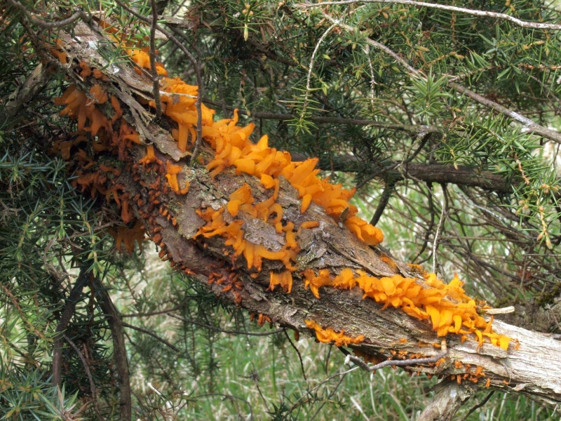 Weiter ging es auf einer Wacholderheide mit dem Weißdorn-Gitterrost (Gymnosporangium clavariiforme)