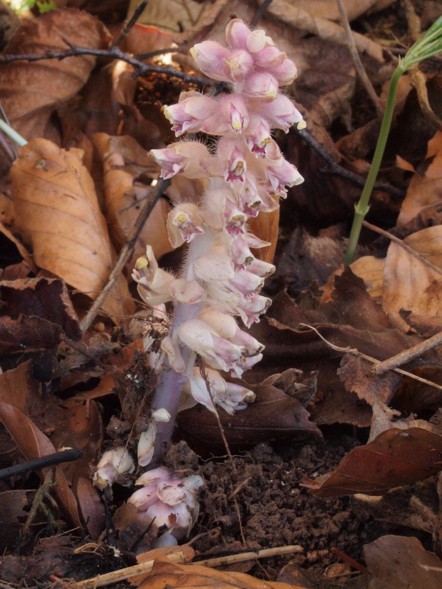 An einem potentiellen Morchelstandort gingen wir noch leer aus aber wurden durch schöne Exemplare der Violetten Schuppenwurz (Laethaea squamaria) entschädigt