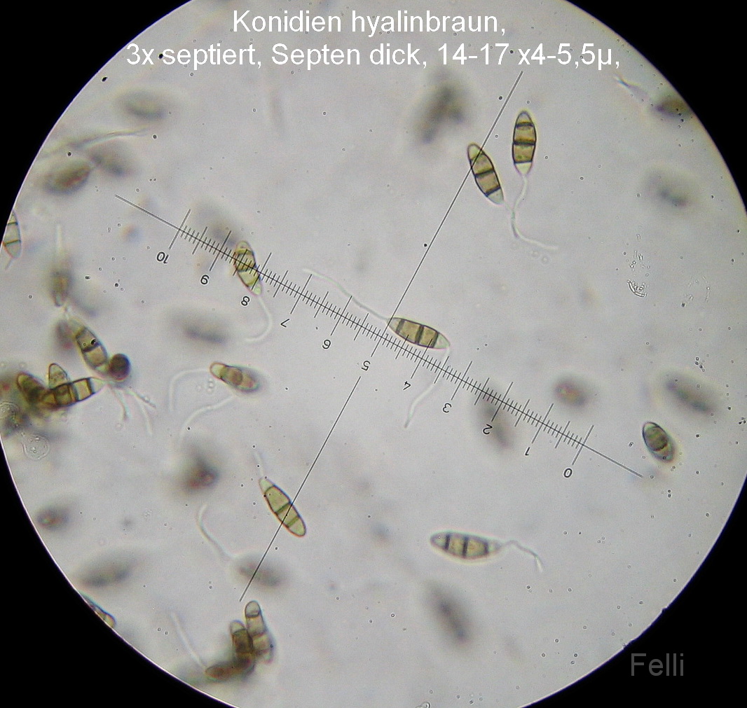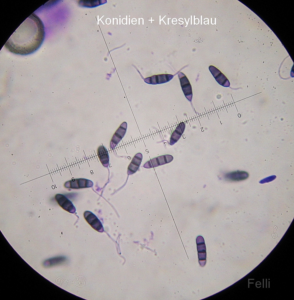 Für Sp. rosarum sind die Konidien zu groß, und für Seimatosporium rosae sind sie mir nicht gebogen genug.