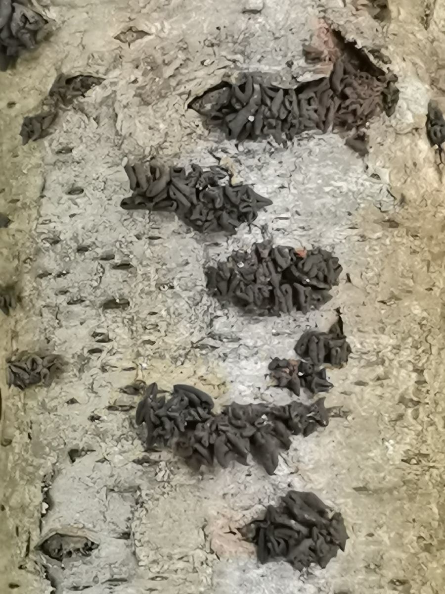 Viele werden Ionomidotis fulvotingens noch nicht gesehen haben und bei diesen schon leicht angetrockneten Frkpn. evtl. auch an eine Encoelia denken, zumal man z.B. den Hasel-Kleiebecherling E. furfuracea schon öfters finden kann als den etwas kleineren, eher seltenen Braunschwarzen Rindenbecher.