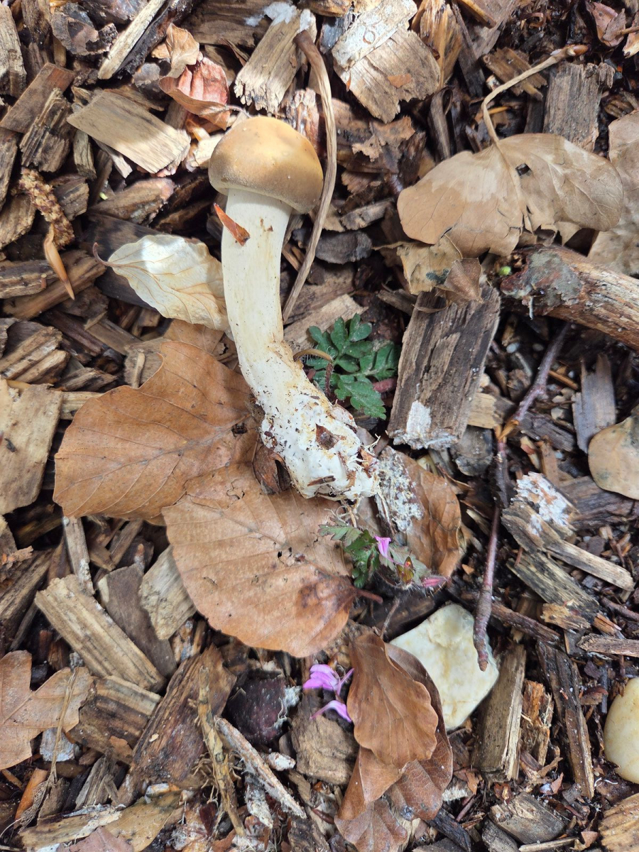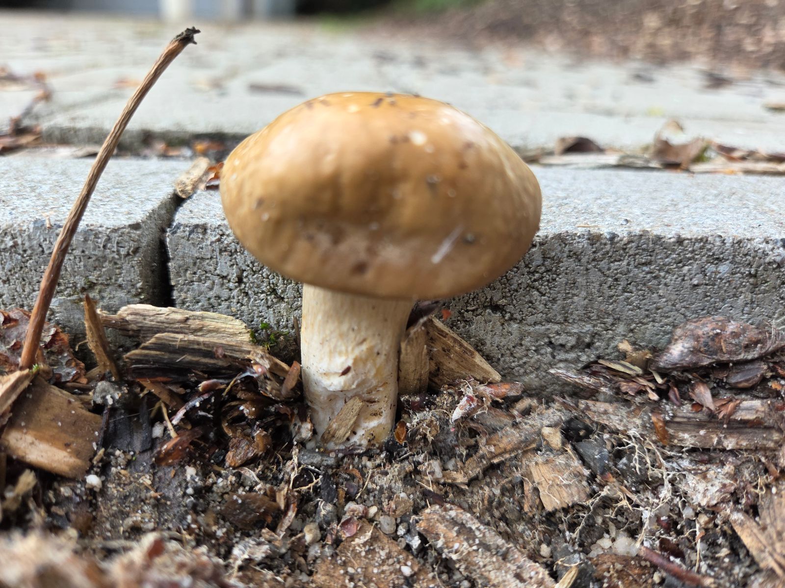 Er wächst im Rindenmulch bei uns am Spielplatz.