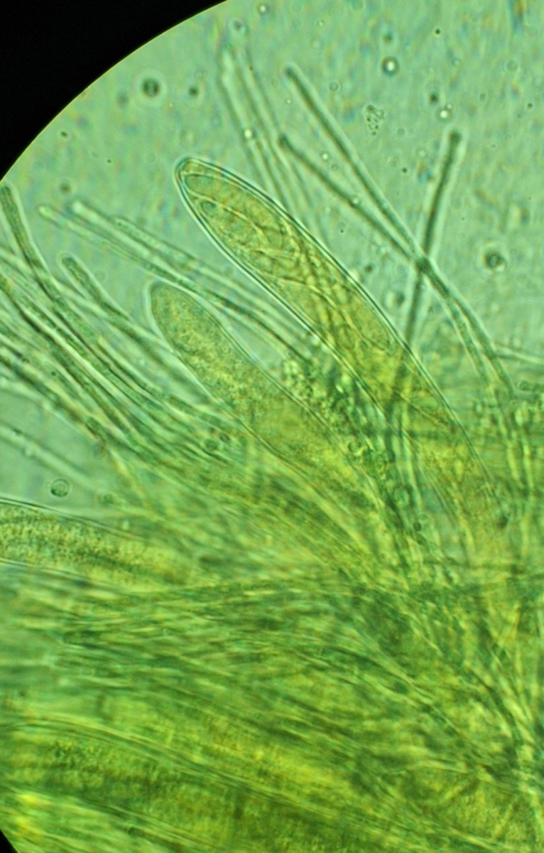 Melzers, J- oder nur minimale Anfärbung der Spitzen. Die Asci sind um 120*13 µm groß. Die wenigen Sporen, die zu vermessen waren, um 18-20*7 µm
