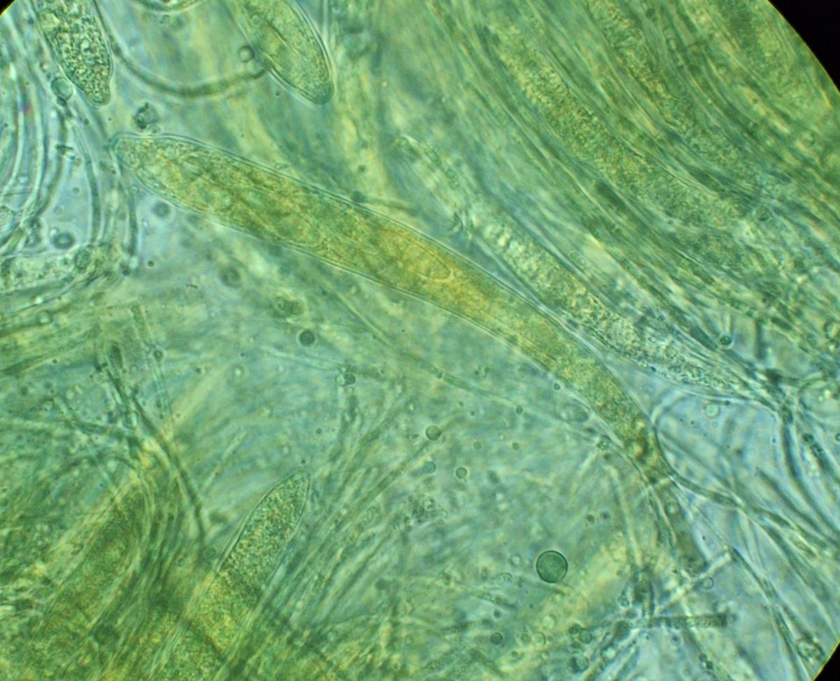Melzers, J- oder nur minimale Anfärbung der Spitzen. Die Asci sind um 120*13 µm groß. Die wenigen Sporen, die zu vermessen waren, um 18-20*7 µm