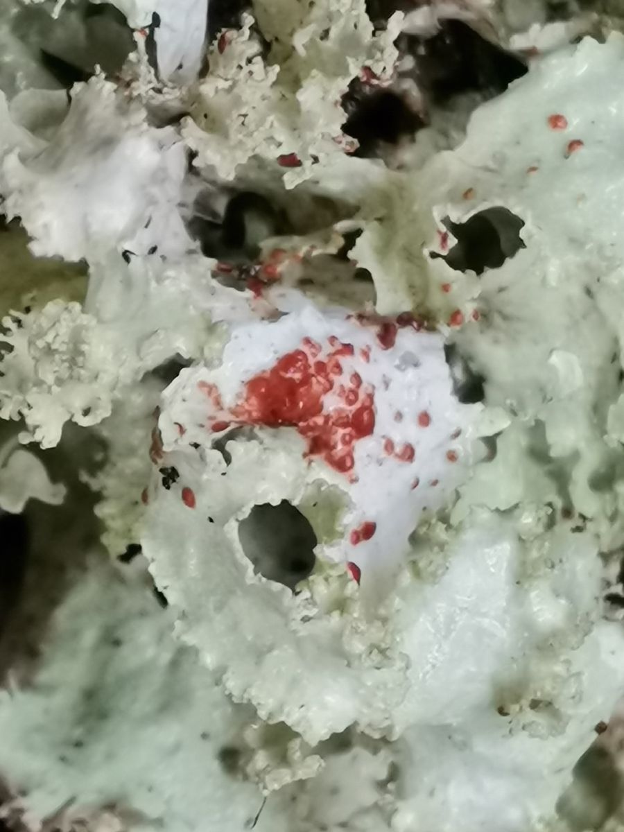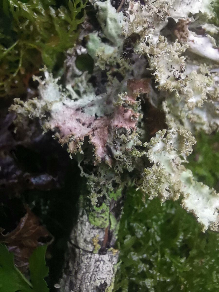 Das sollte platismatia Cetrelia olivetorum sein aber das rosa geht mir nicht ein. Und ein Exemplar mit Befall durch tremella coppinsii lg.
