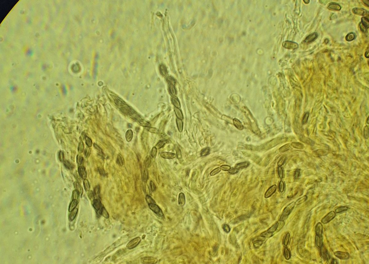 Sporen stumpfelliptisch, 4-7,5*2,5-3 µm, pigmentiert