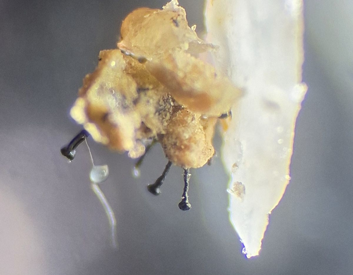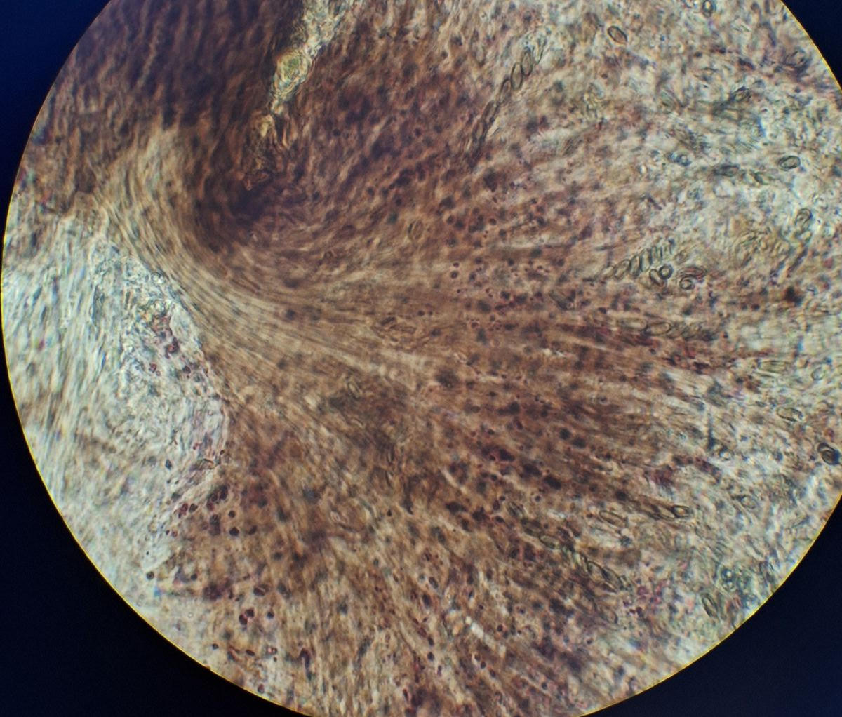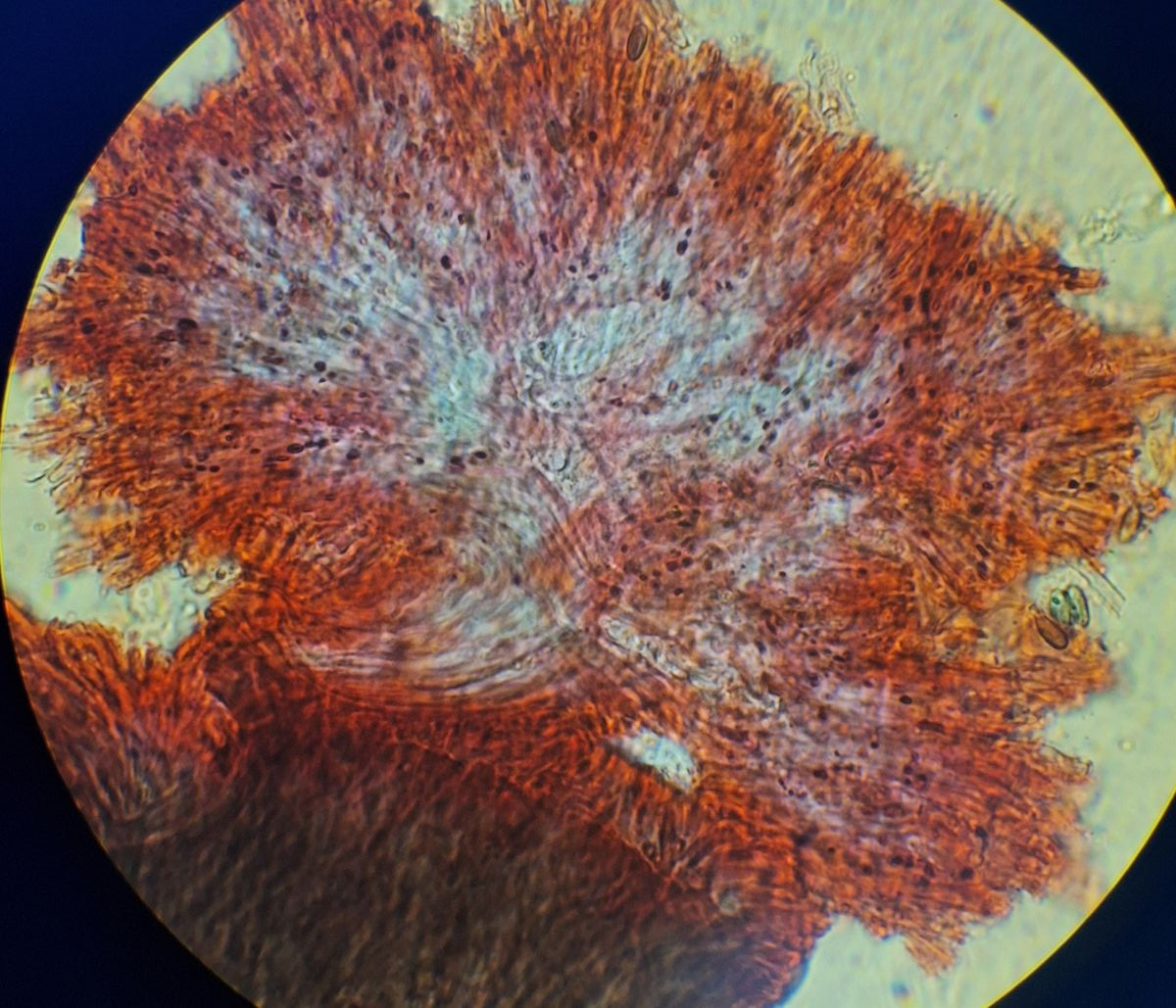 In Wasser und Kongorot sind noch dunkle Pigmente zu sehen, die eventuell zu den Paraphysen gehören