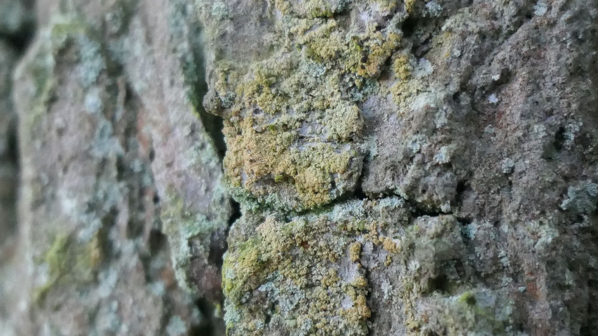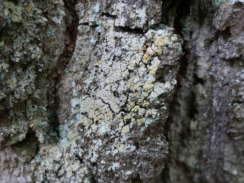 An Eiche finden sich zugleich oft andere Stecknadeln mit eher grünlichem Thallus.
