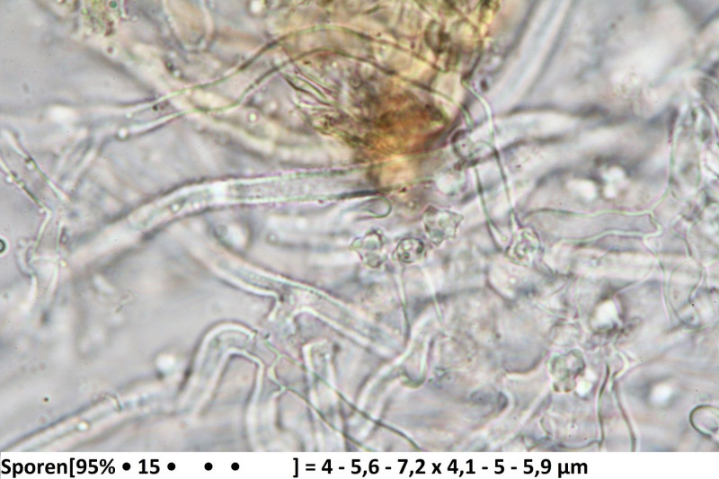 Die Sporen sehen wie die von einer Tomentella oder Entoloma aus, was mich sehr stutzig gemacht hat.