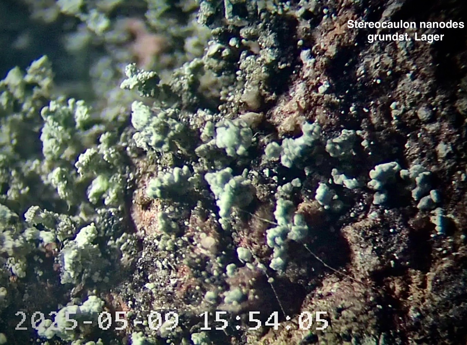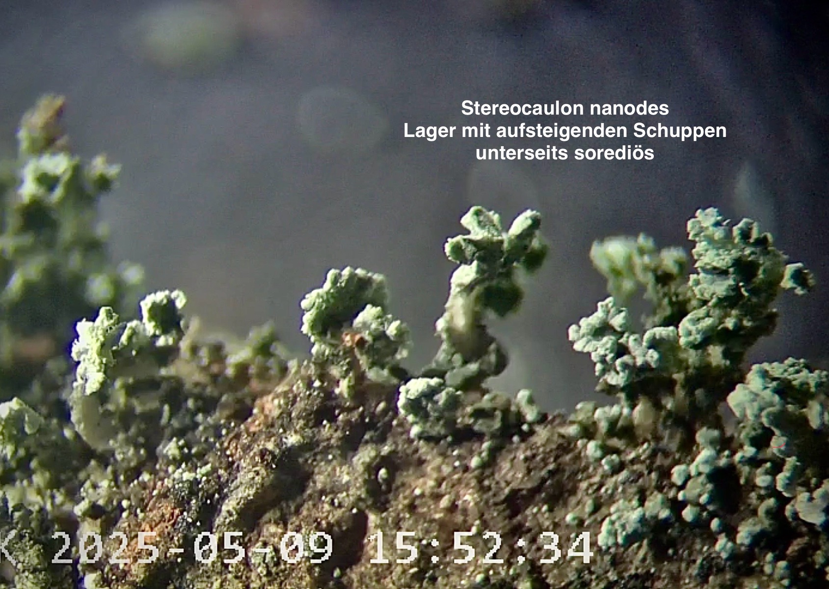 Die Phyllocladien scheinen unterseits deutlich sorediös zu sein. Zusammen mit dem Habitus (zusammenhängender, flacher Rasen) wäre ich erstmal (recht sicher...) bei Stereocaulon nanodes.