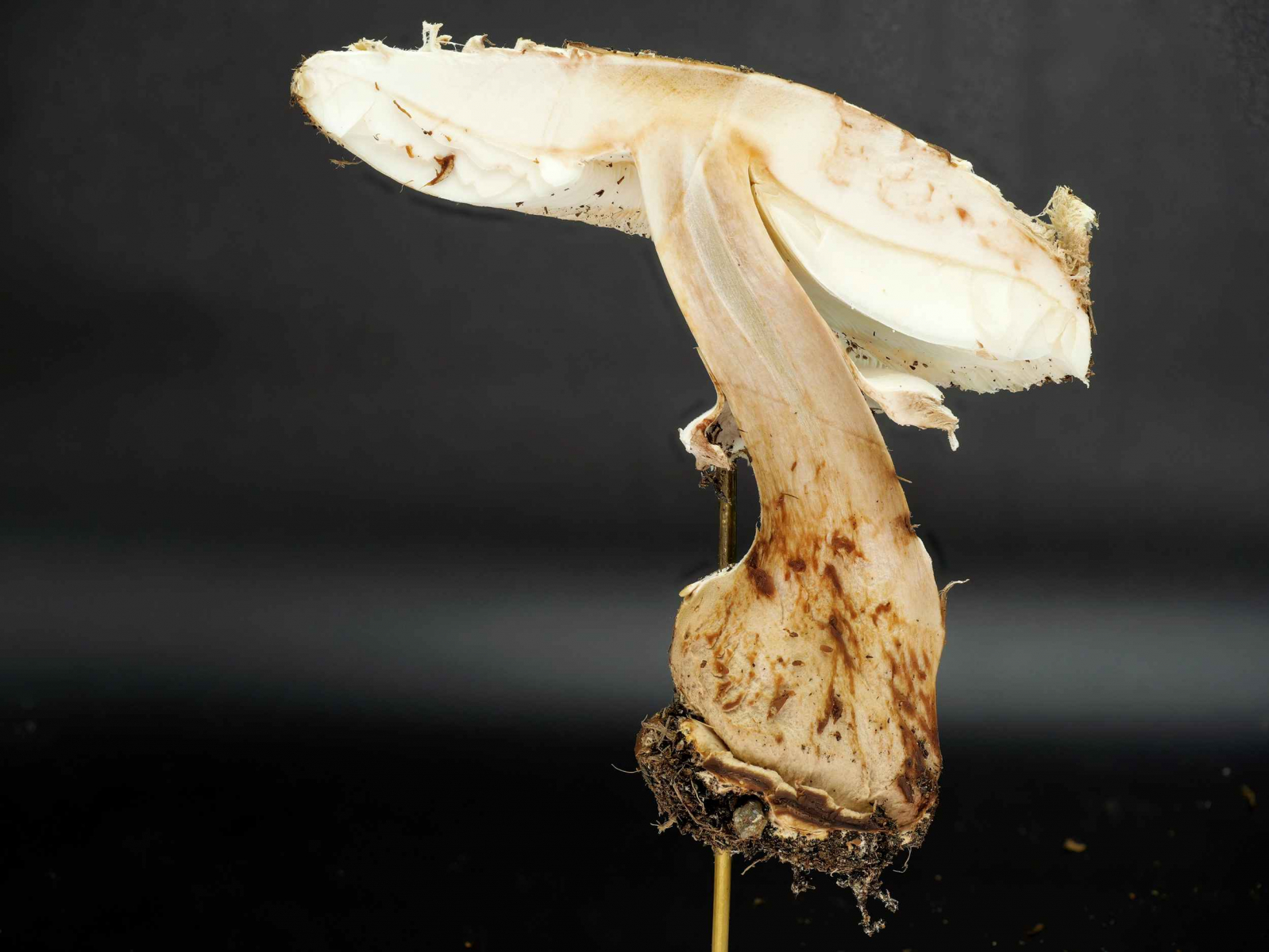 Und in der Tat wuchsen 3 Stück 10 cm große Pilze in besagten Blumentopf. Auf den ersten Blick sah man, dass eben nicht der erhoffte Lepiota xanthophyllum war.