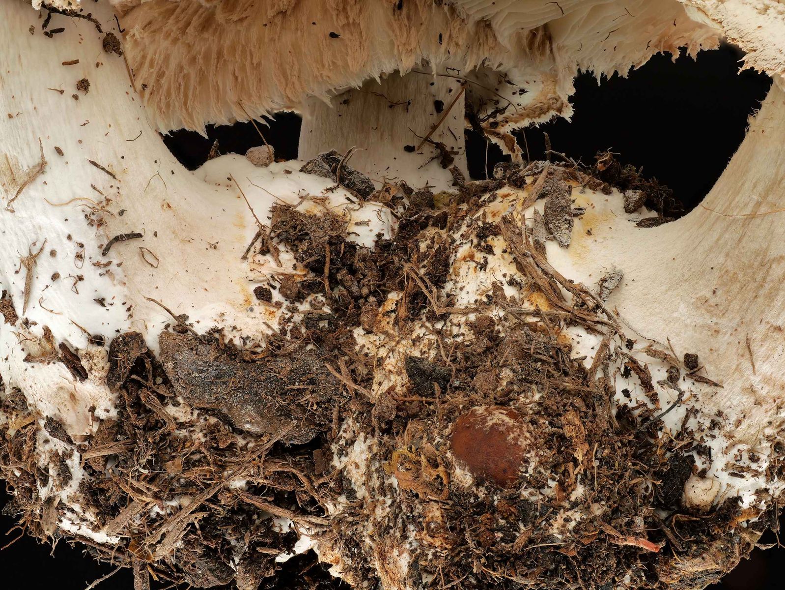 Auf dem Substrat lag jede Menge SP von heller, leicht gräulicher bis hellgelblicher Farbe.