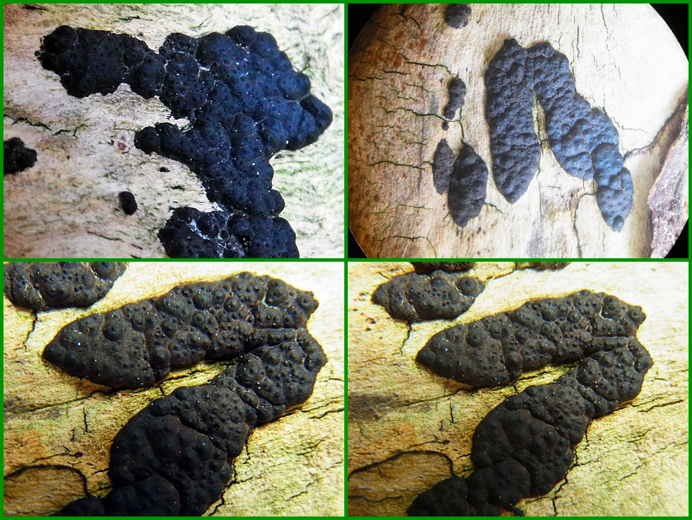 Ähnlich ist noch Nemania aenea, die üblicherweise in sehr feuchtem Umfeld vorkommt, also z.B. Uferbereich eines Bachs oder dauerfeuchte Plätze. N. serpens ist bei mir zigfach häufiger.