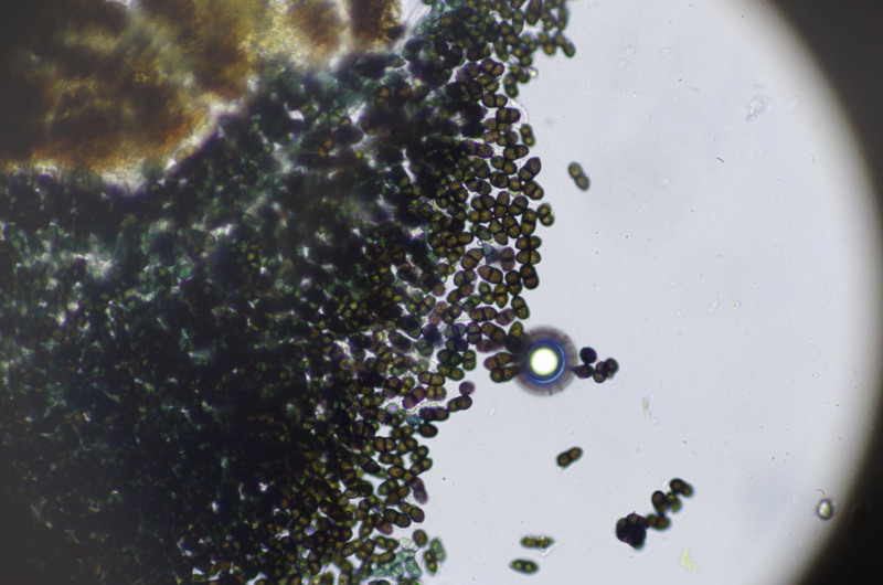 Die Sporen liegen direkt auf der Oberfläche des Apotheciums: