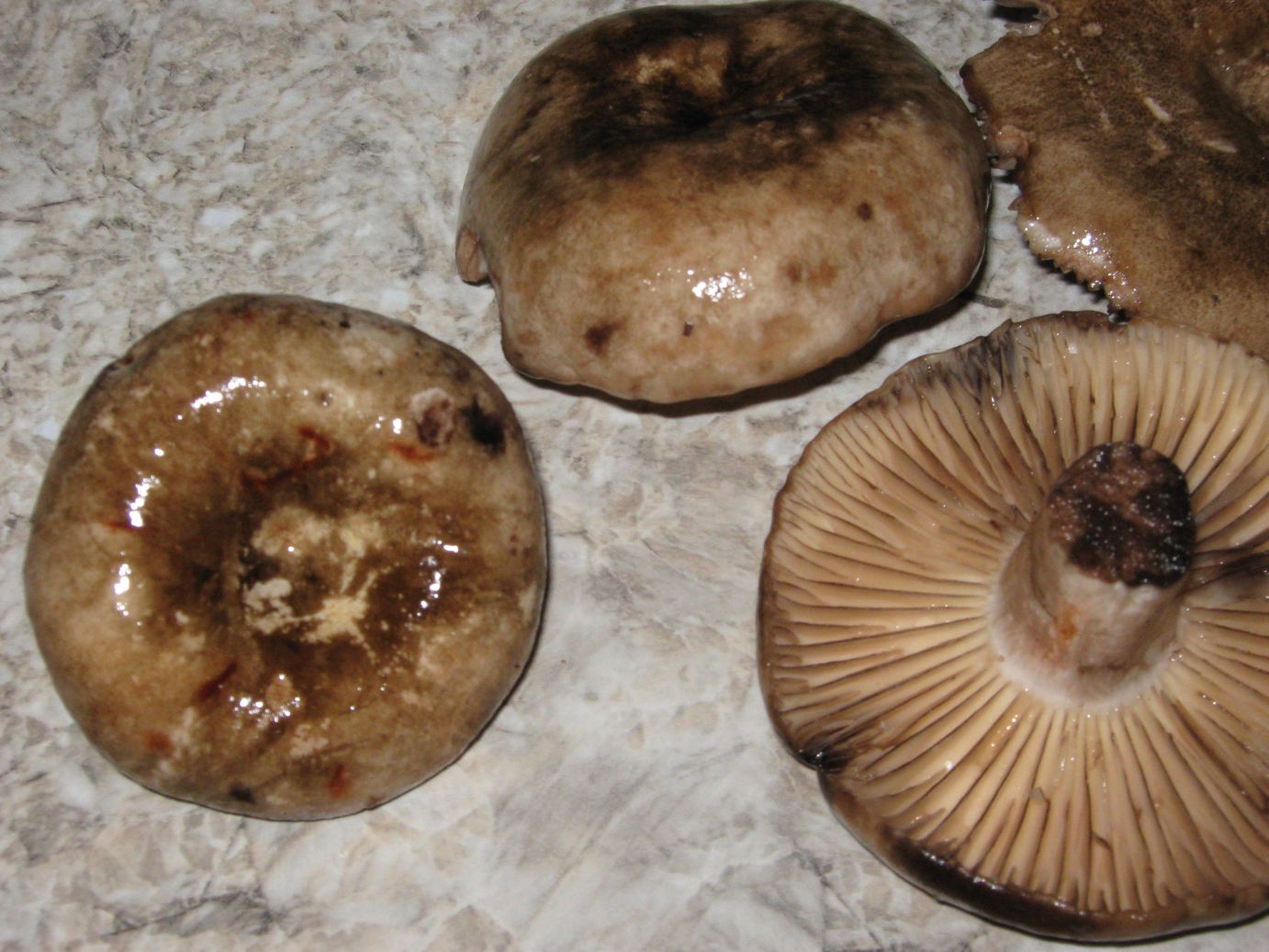 Dickblättriger Schwärztäubling. Jetzt kannst Du ja mal googeln und in Dein Pilzbuch schauen und dann vergleichen ob das hinkommen könnte..Viel Spaß beim Suchen