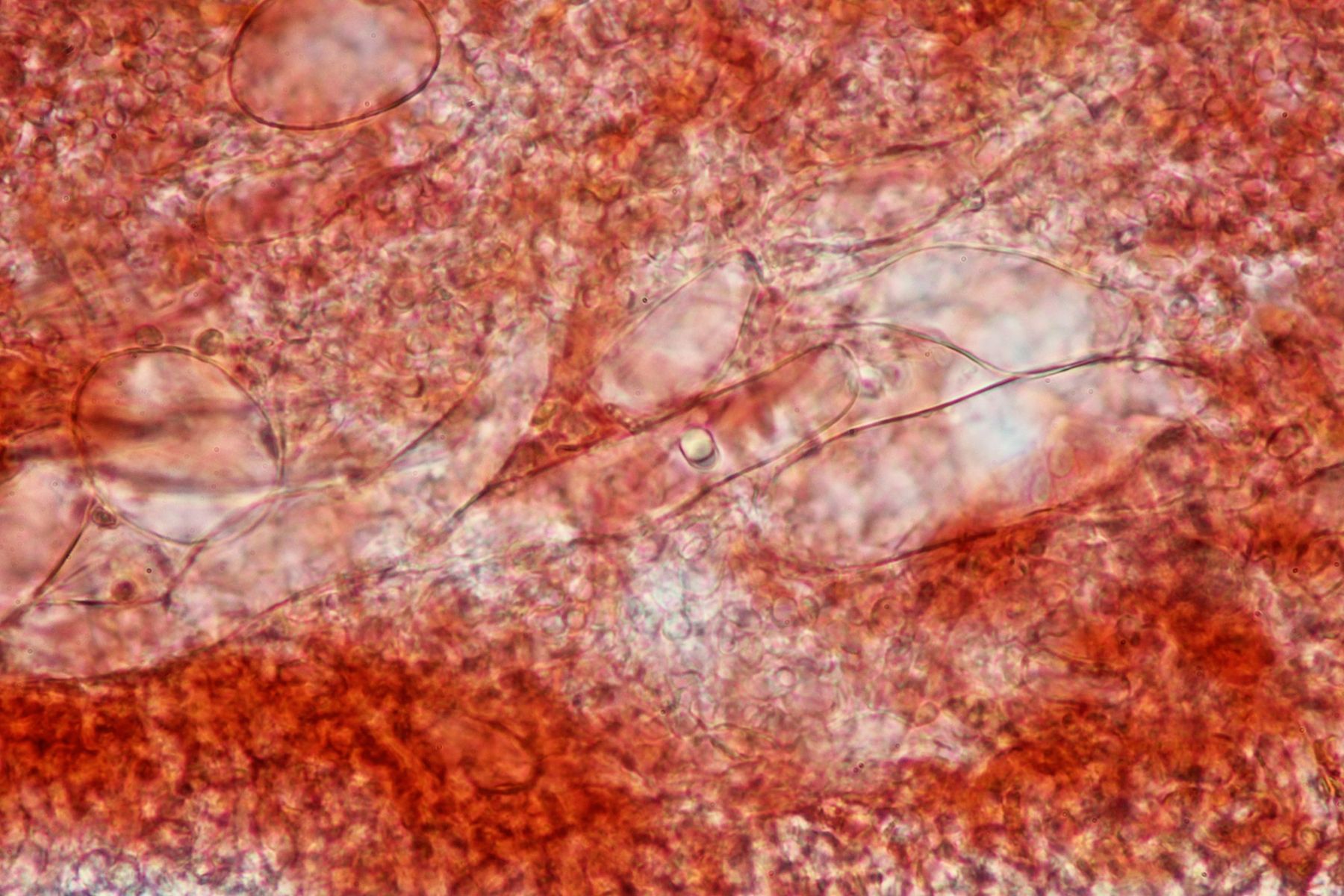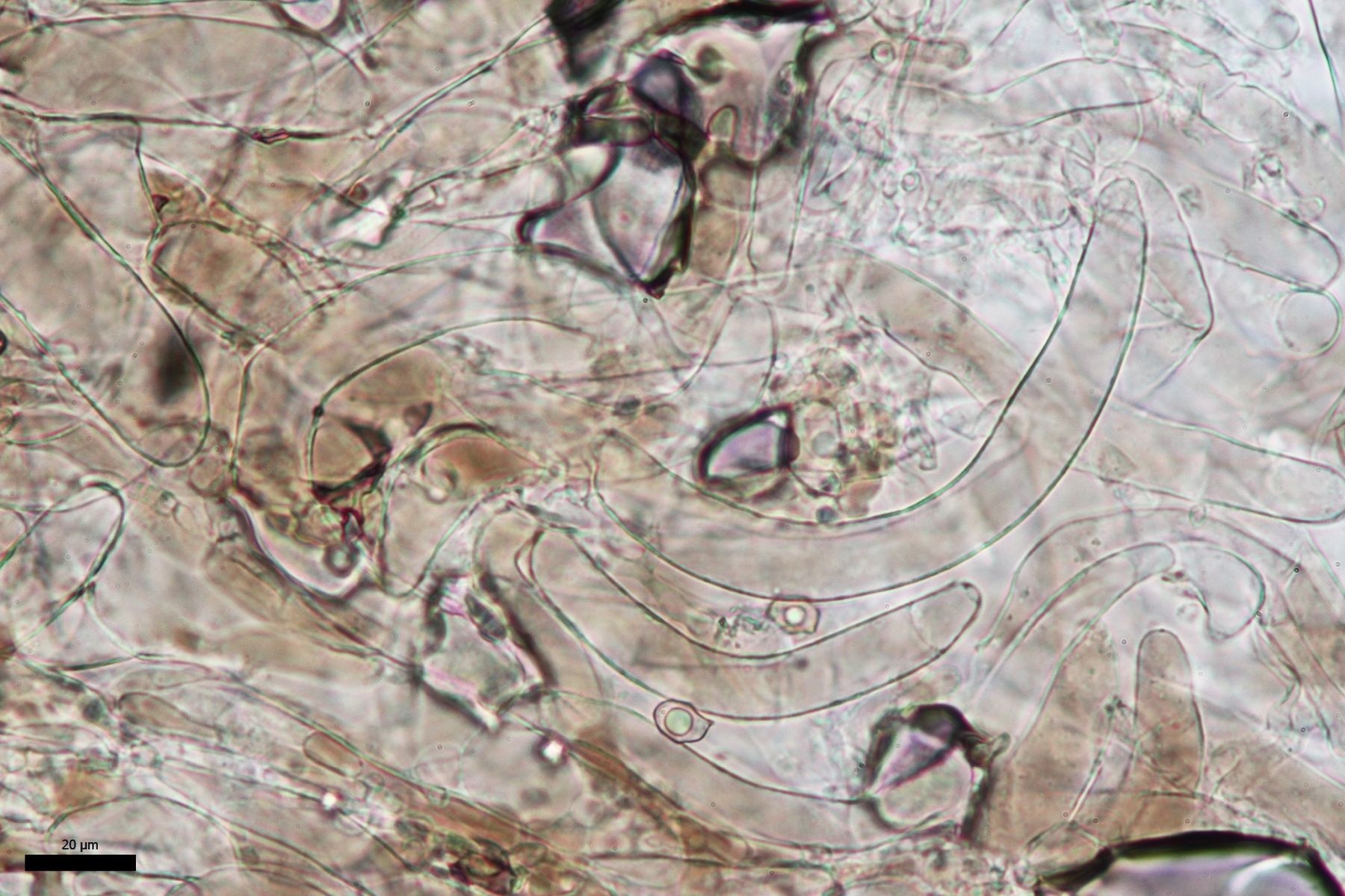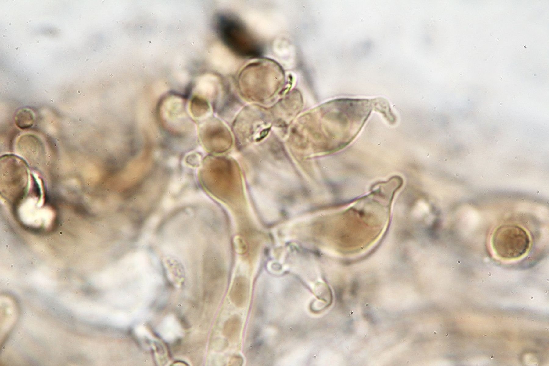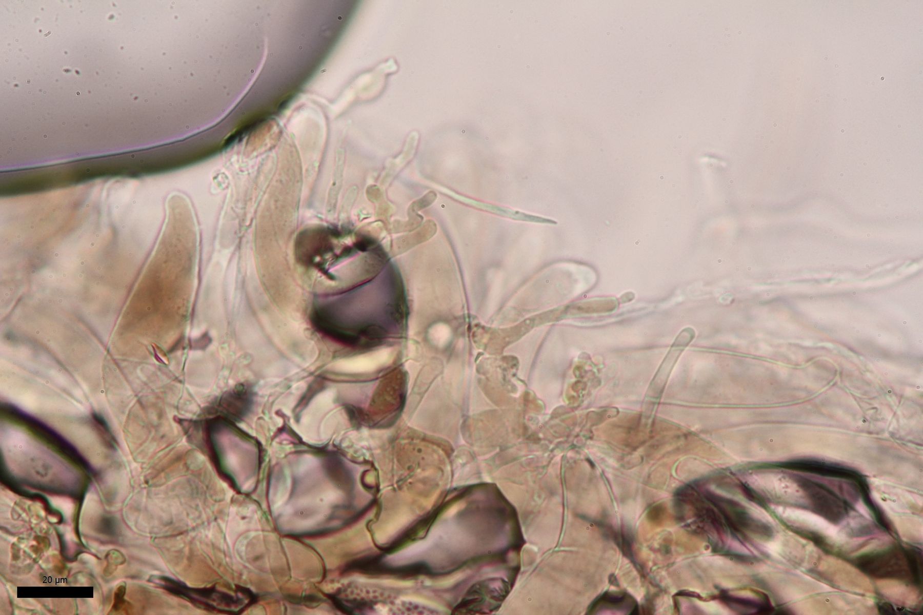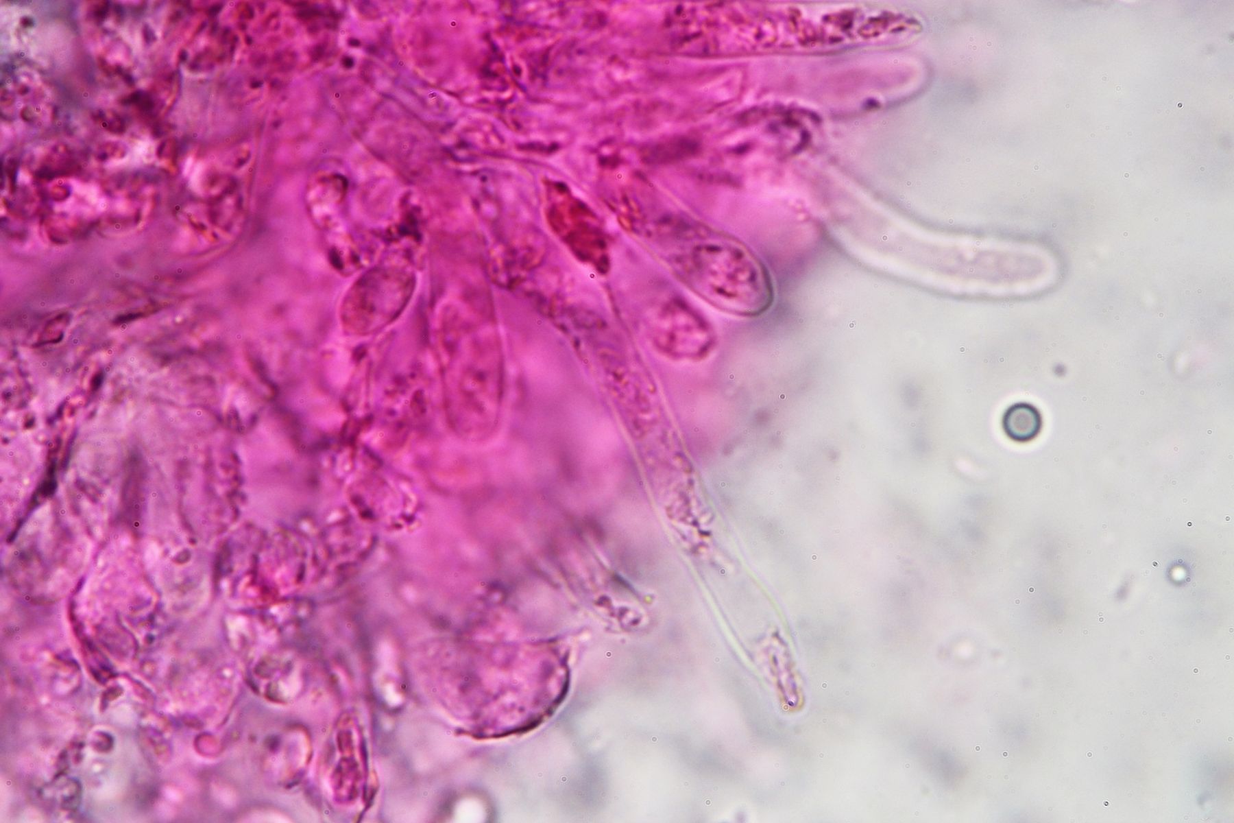 Es gibt lange Cheilozystiden, Pleurozystiden konnte ich keine sehen, dafür vereinzelte Kaulozystiden.