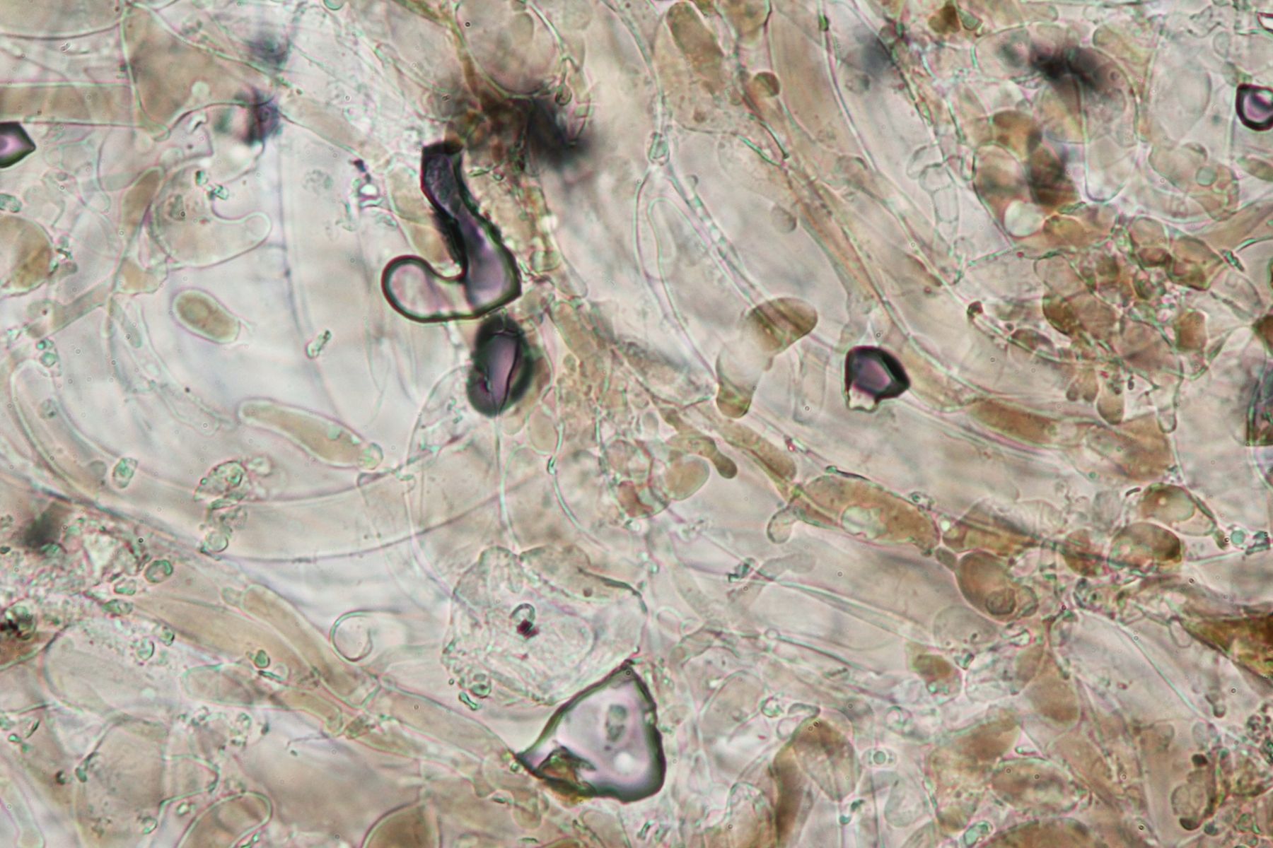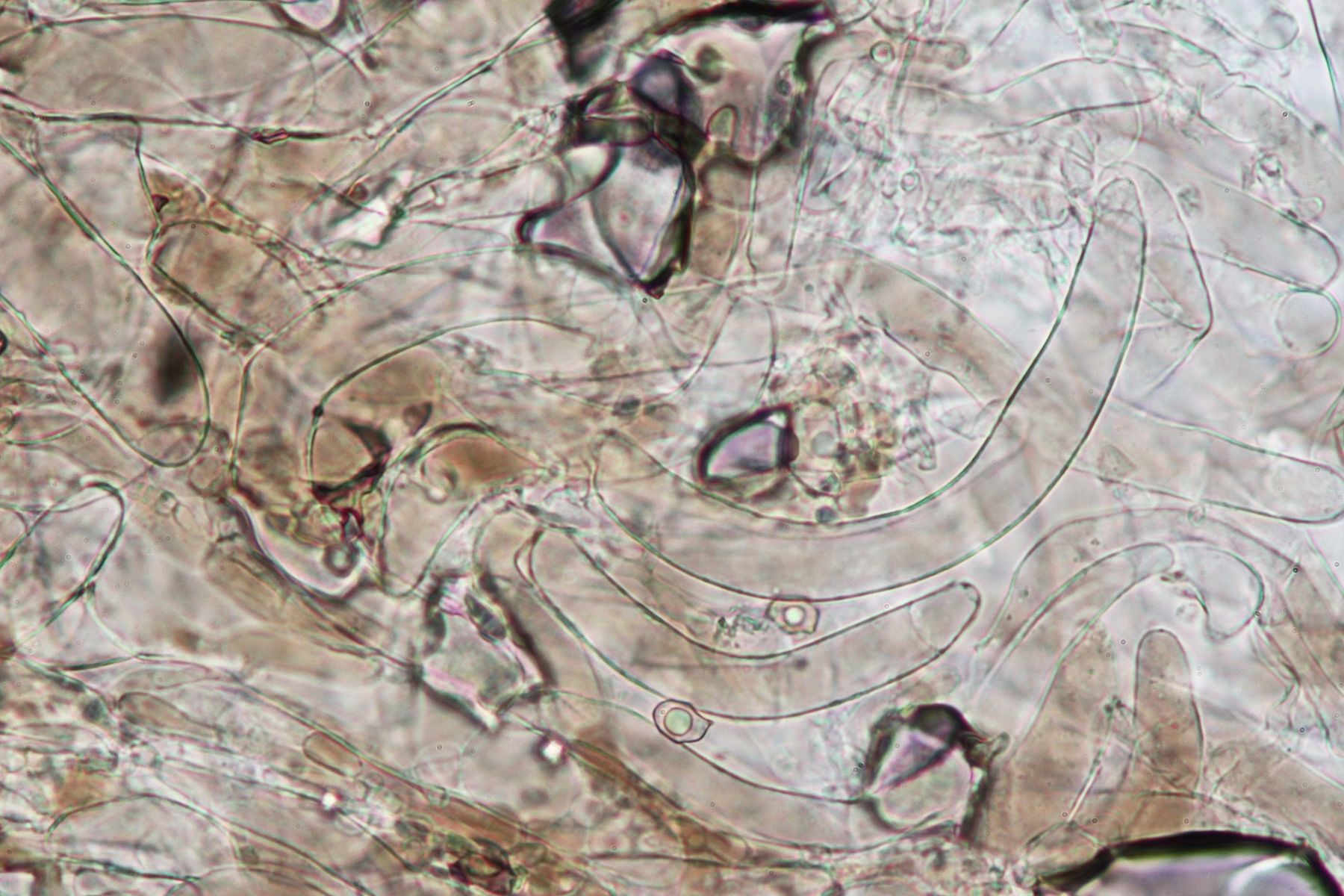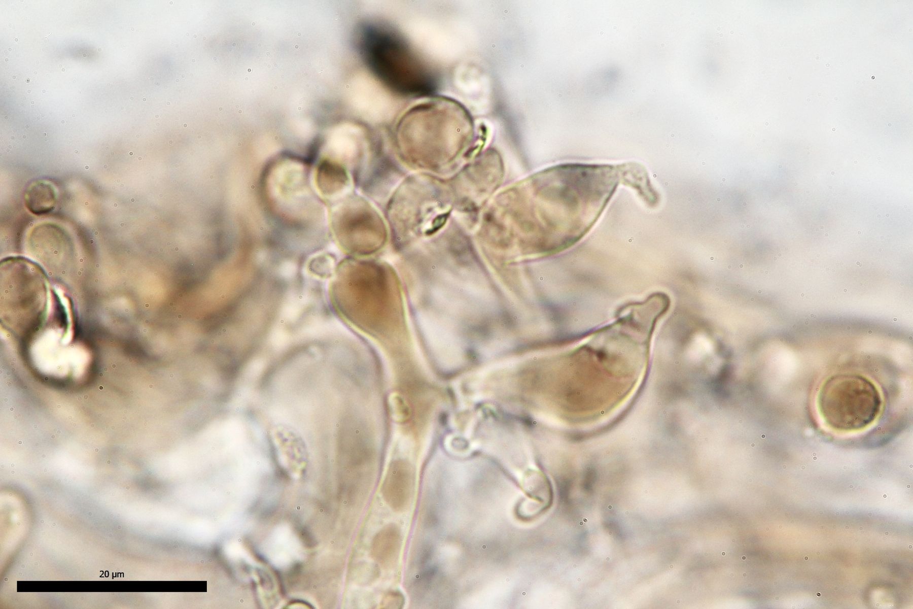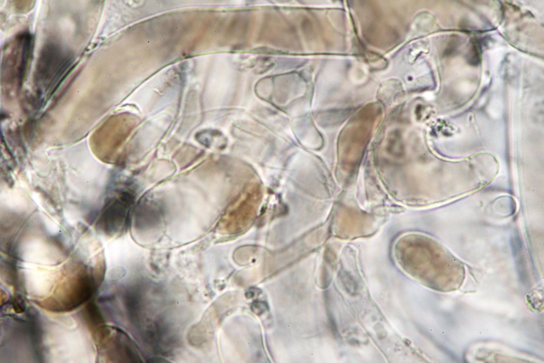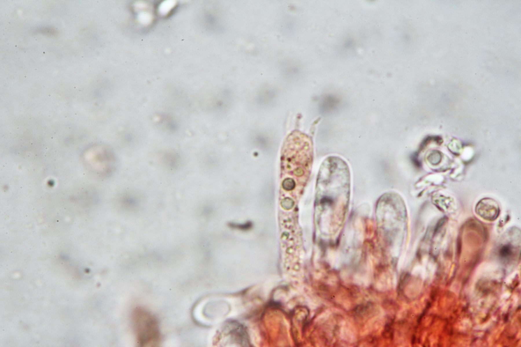 Es gibt lange Cheilozystiden, Pleurozystiden konnte ich keine sehen, dafür vereinzelte Kaulozystiden.