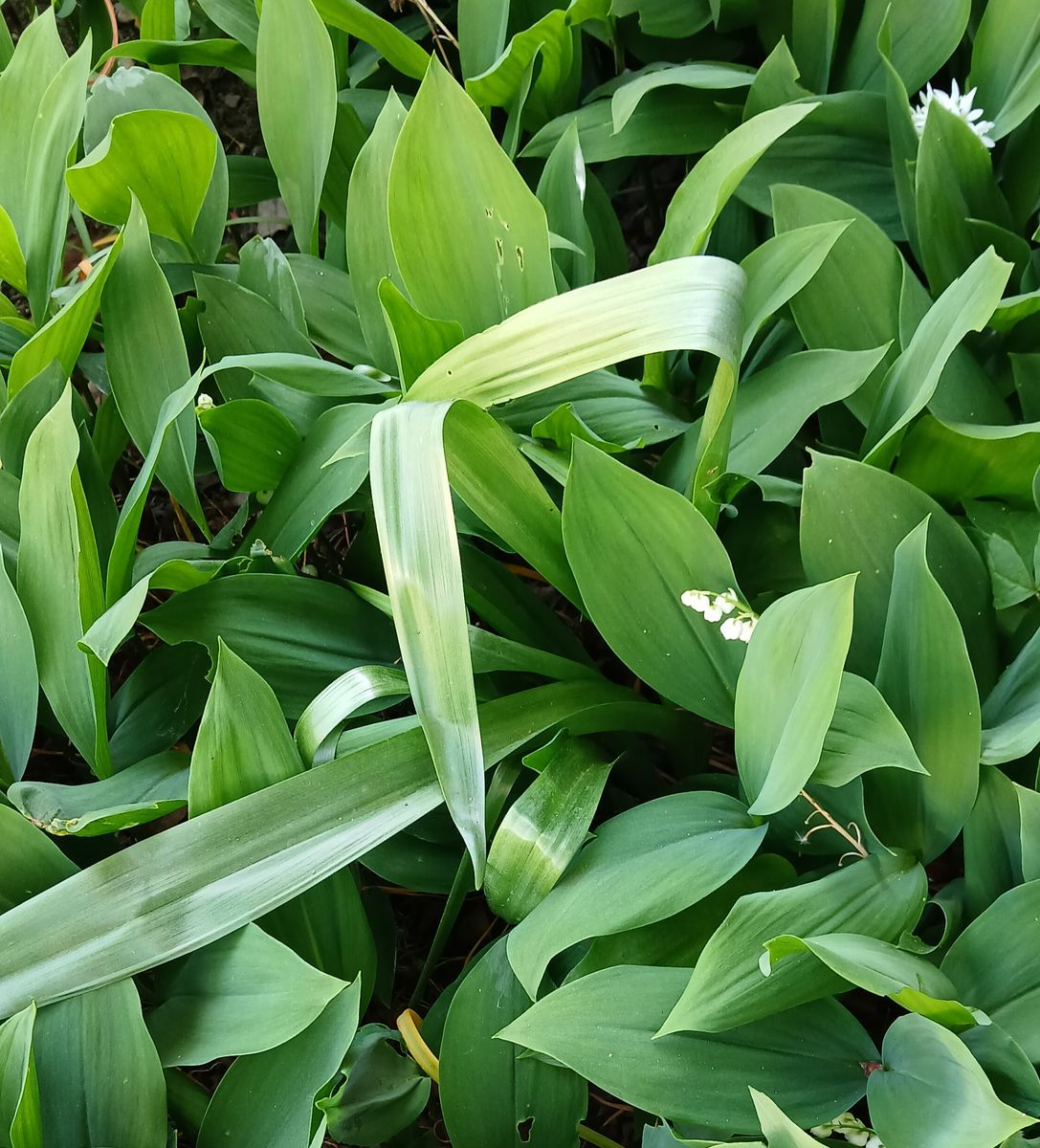 Mitte rechts die Blüte des Maiglöckchens