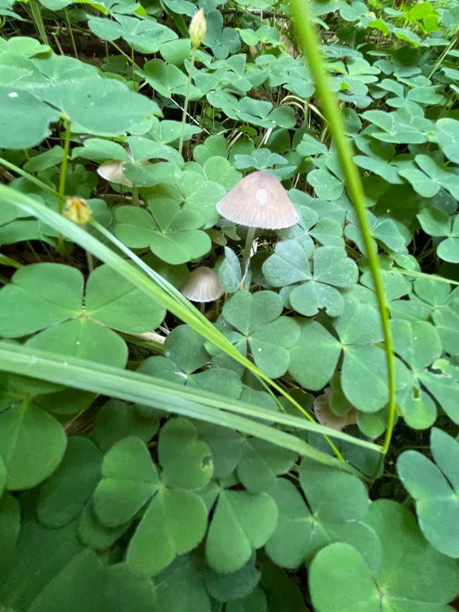 Boden bewuchs, leicht moosig mit sauer oder Waldklee, vielleicht kann das jemand genauer bestimmen?Hut Oberseite ist leicht bräunlich
