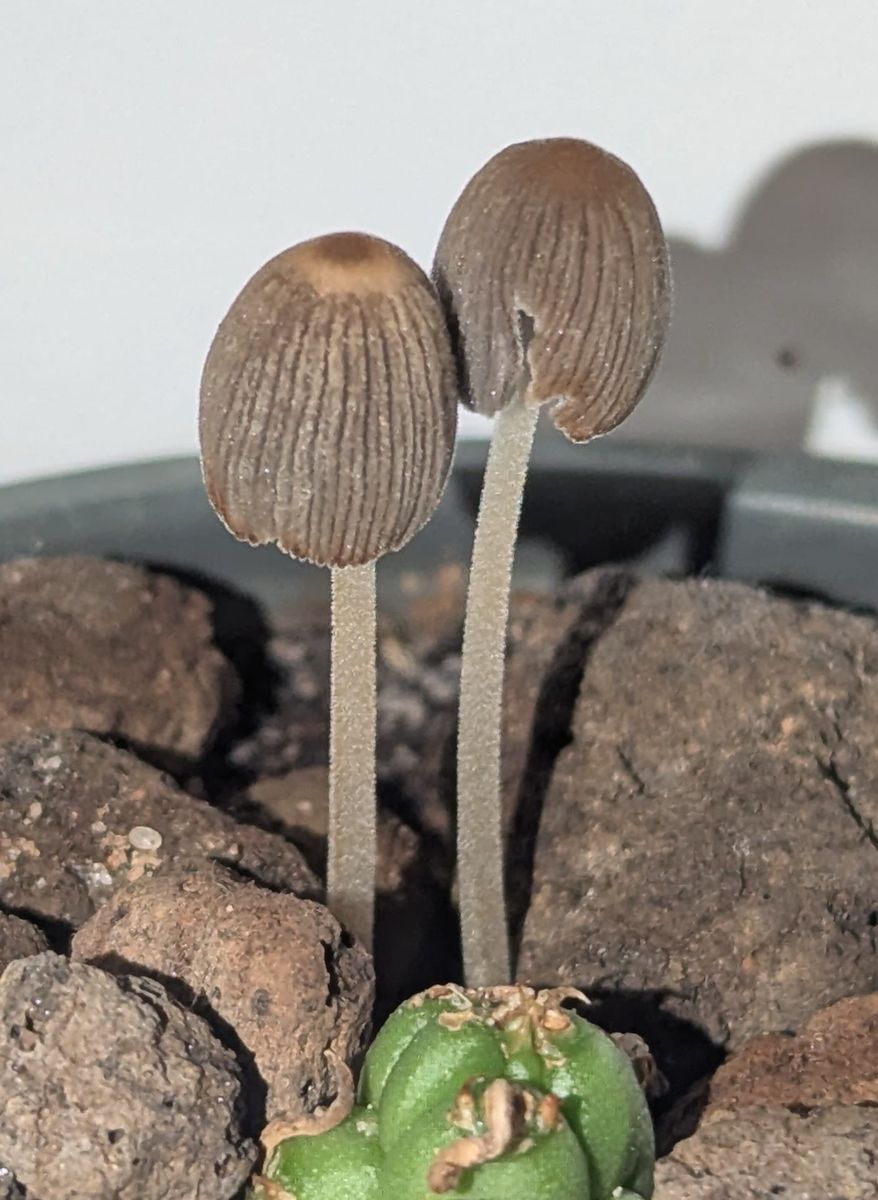 ich bitte um Hinweise bei der Bestimmung eines kleinen Tintlings im Blumentopf. Der Standort und die Morphologie ließ mich gleich an den Narcissea patouillardii (Eintags-Tintling) denken, zumal die Fruchtkörper innerhalb eines Tages von ganz klein und orangebräunlich zum aktuellen fast ausgewachsenen Zustand heranwuchsen. Allerdings scheinen die Sporen wohl nicht passend zu sein.