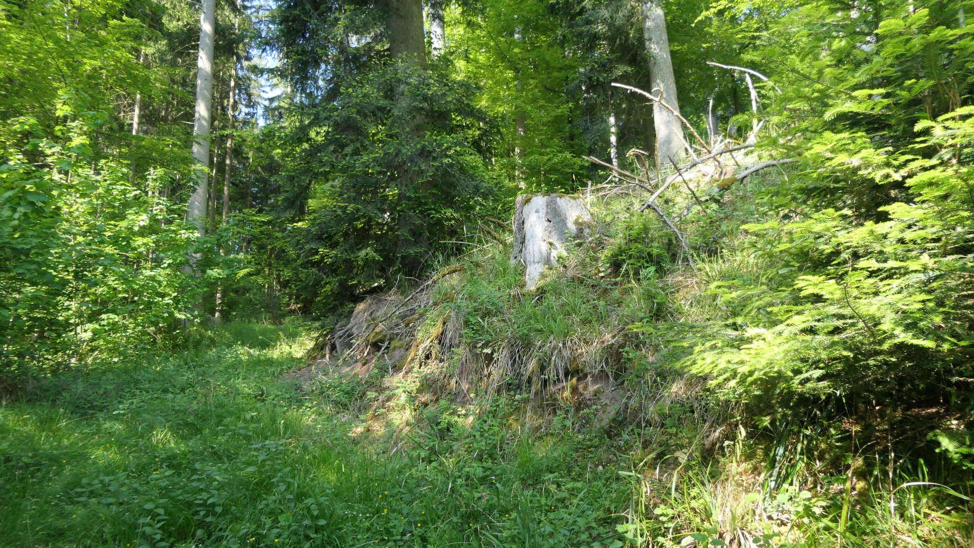 Bild 1 Ein Waldweg im Herzen der Schwäbisch-Fränkischen Waldberge, mit einer Tanne an der Böschung...