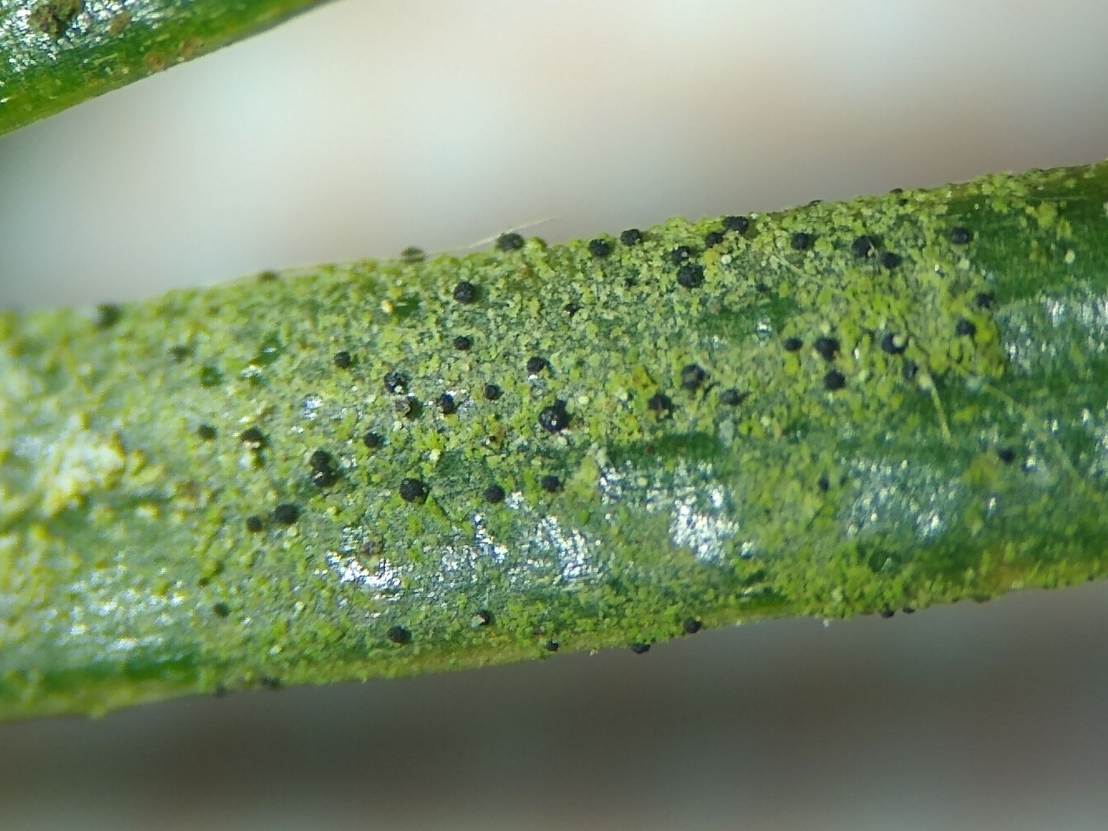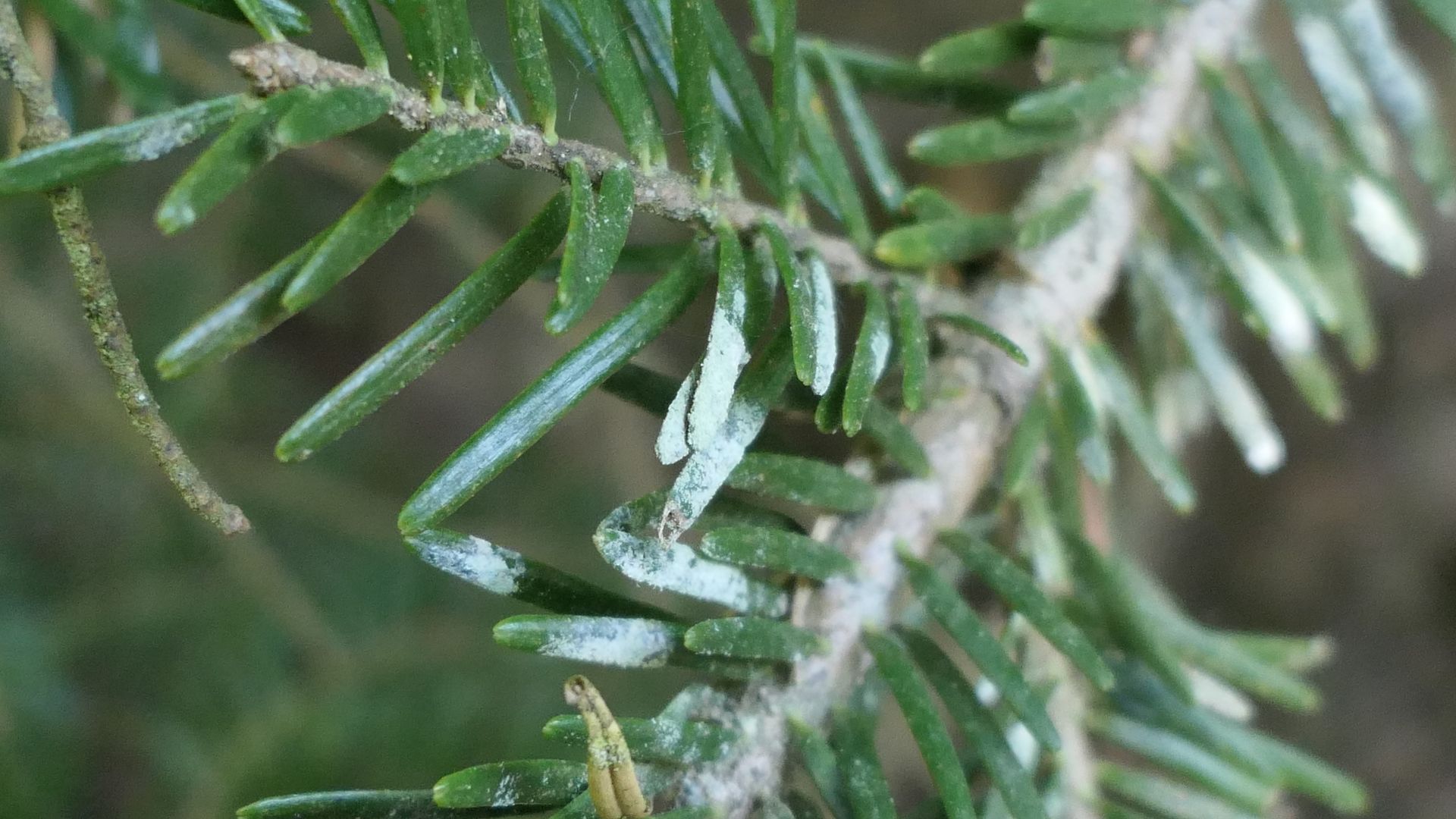 Bild 5 Eine andere Tannennadel auf dem zweiten Ästchen besitzt viele dieser Apothecien!