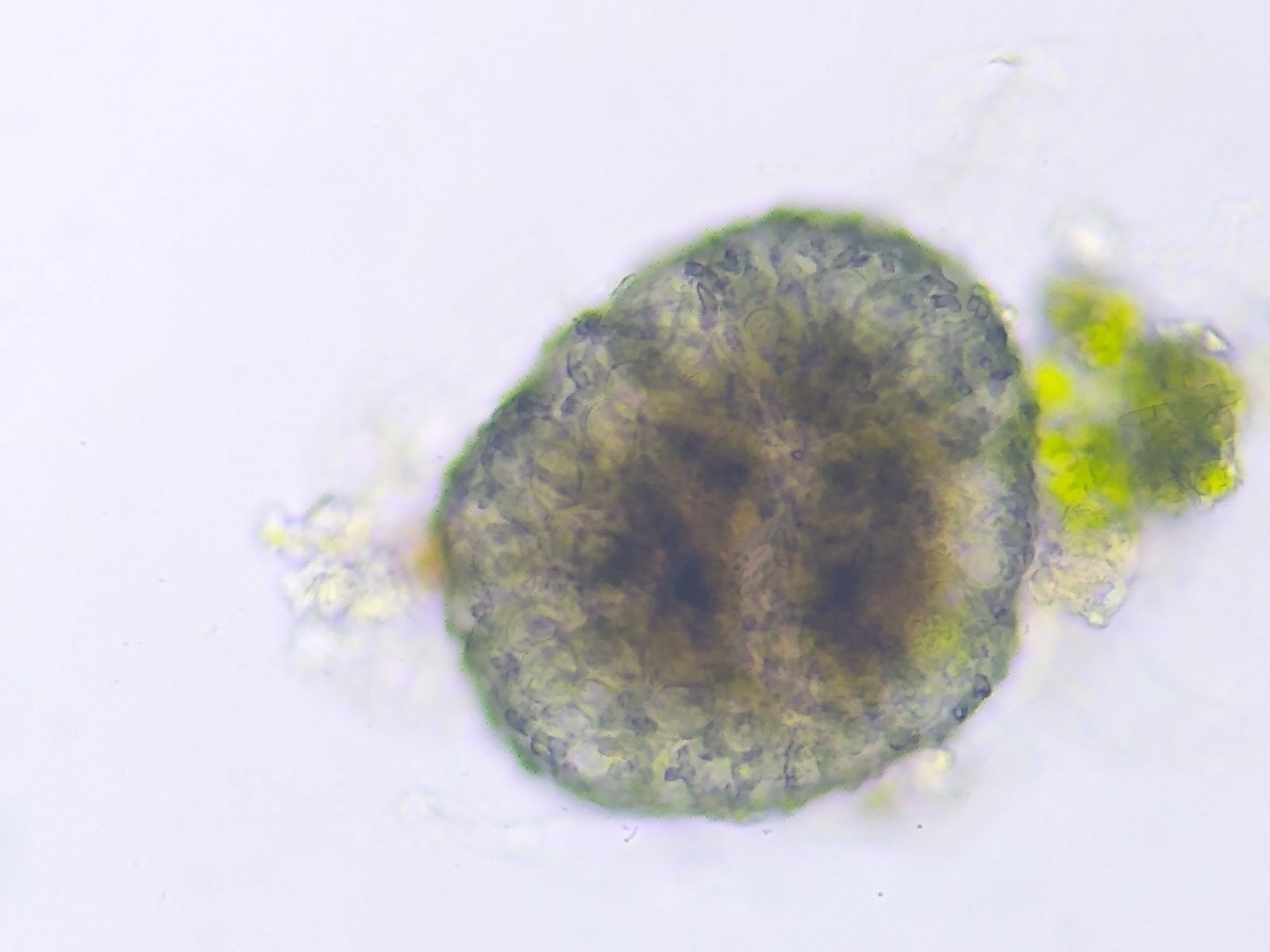 Bild 12 Durch das Quetschen werden etliche Sporen frei.
