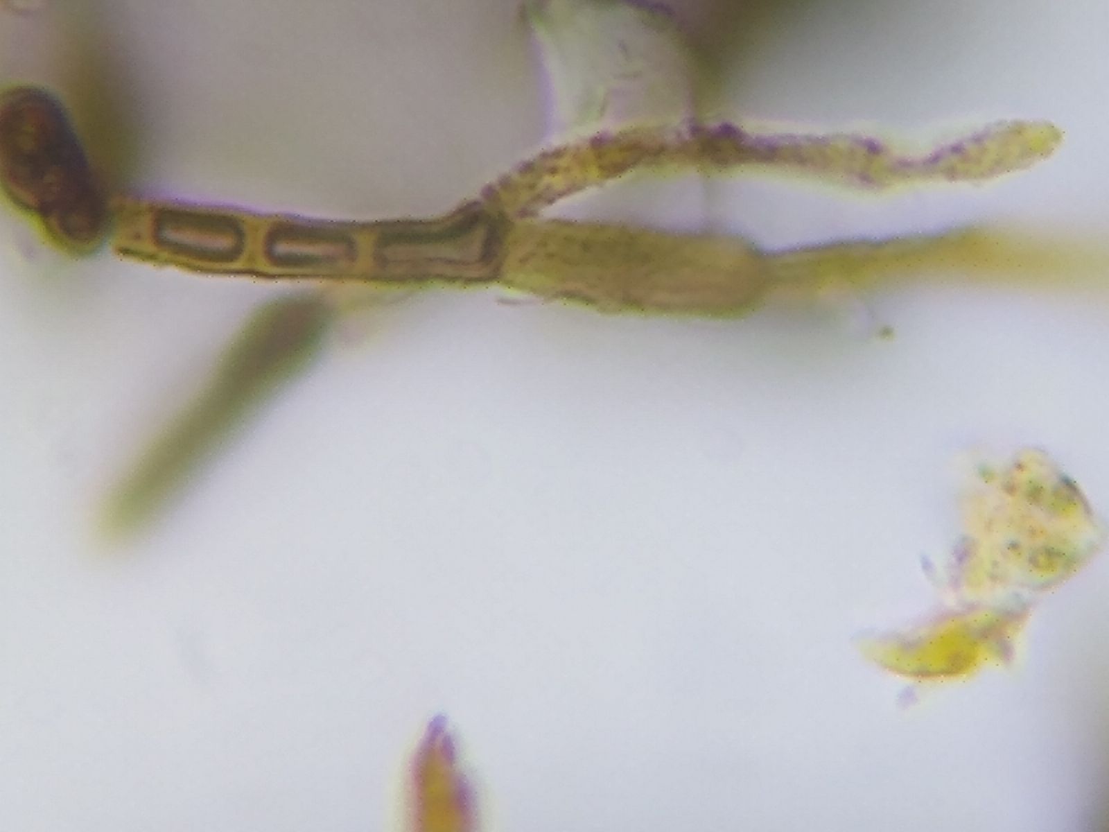 Die Durchmesser der stets unverzweigten Ketten liegt bei 5 µm, die Hyphenwände sind sehr dick (knapp unter 1µm), die Septen schwach eingeschnürt.