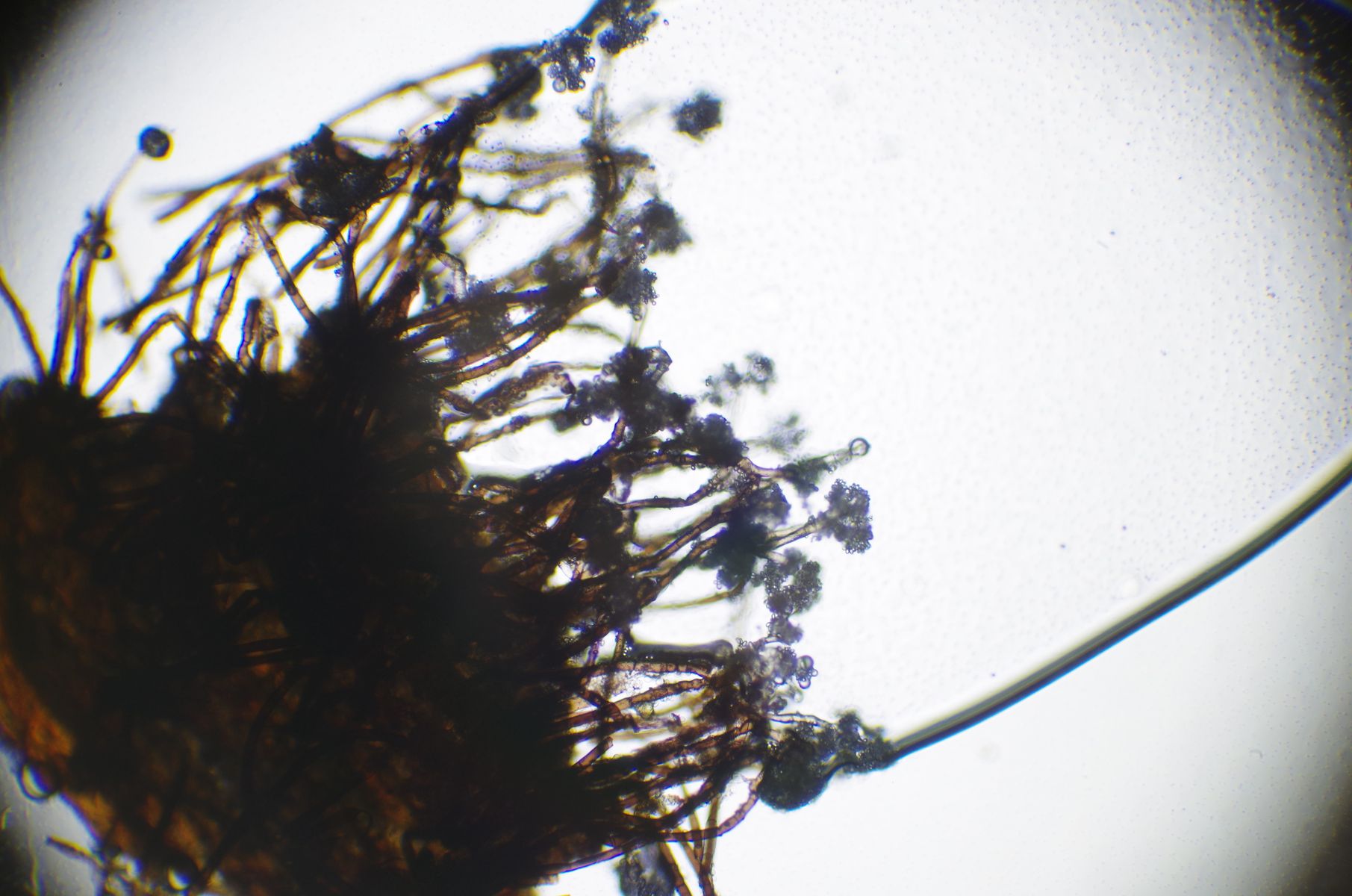<0.3mm kleine schwarze Säulchen, auf der Spitze weiße Enden mit Sporen.