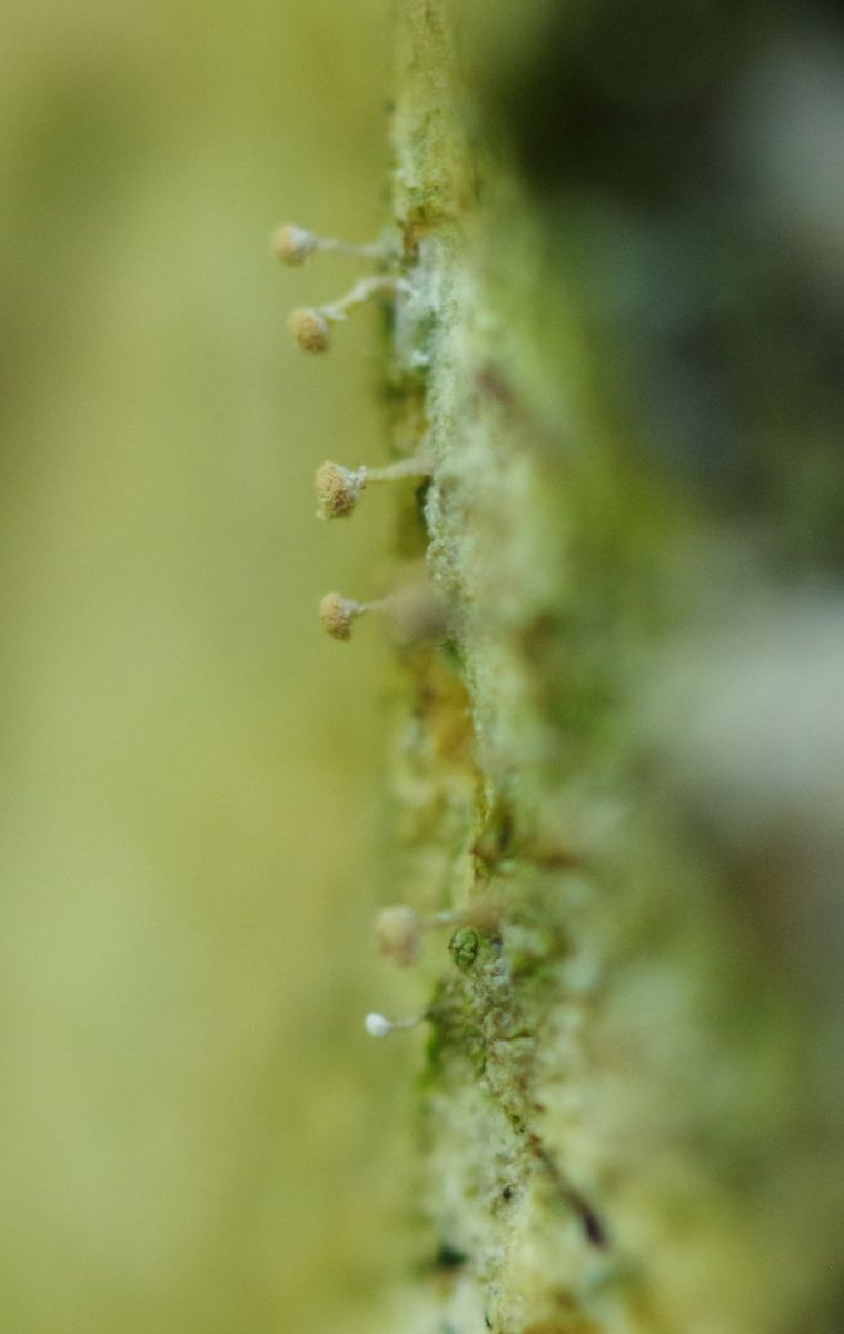 in einem ehemaligen Gutspark auf Borke von Eschen wächst eine weißlich Stecknadelflechte. Zumeist vermischt mit anderen Stecknadeln wie Ch. chlorella, Ch. brachypoda u.a.