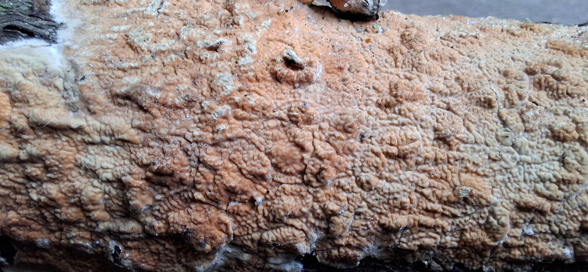 ohne Rindenpilzspezialist zu sein, aber ich hab schon Ceraceomyces serpens gefunden, die so aussahen.