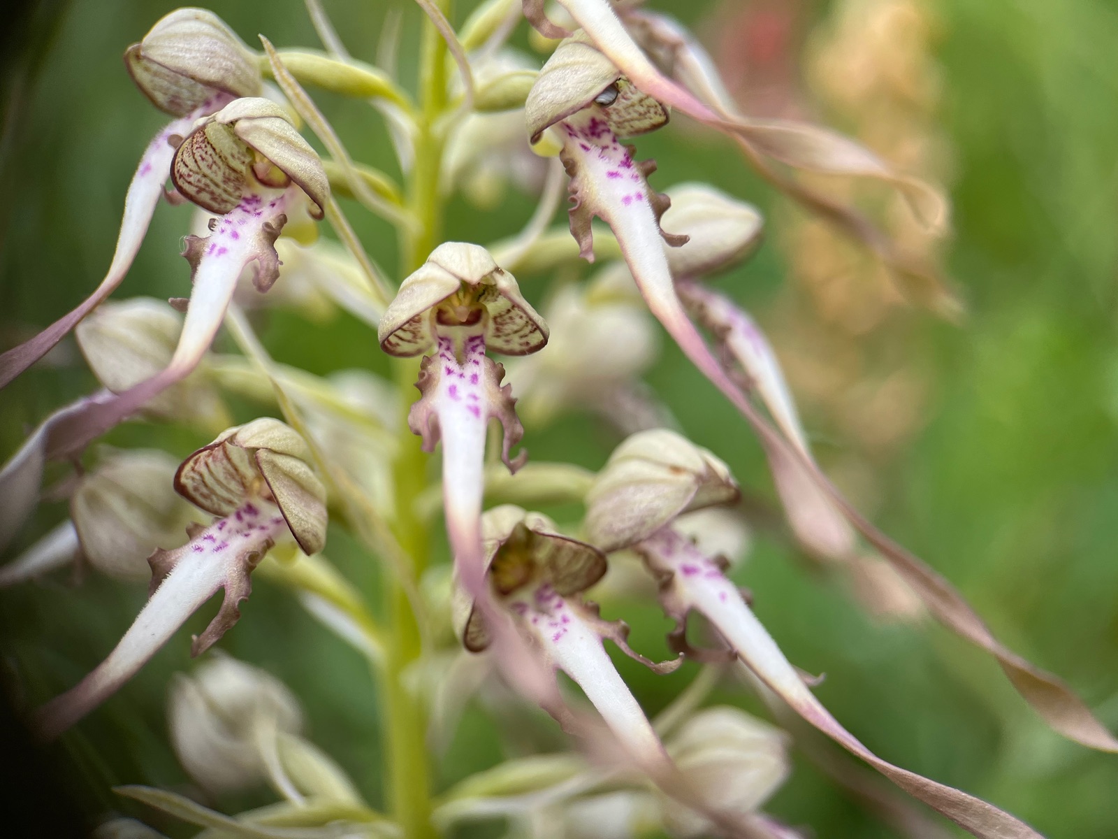 Für einige Arten war es ein bisschen zu spät. Die meisten Ragwurze und Helmknabenkräuter waren überwiegend schon verblüht. Die zu voller Pracht erblühten Bocksriemenzungen und Frauenschuhe haben uns aber mehr als entschädigt. Es ist großartig, was die Natur auf den kargen Südhänge auf den Kalkböden hervorbringt.