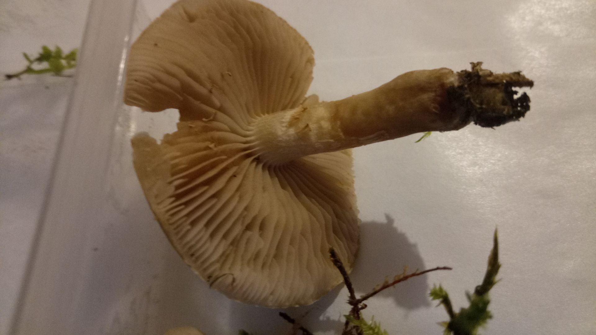 Die Lamellen waren ausgebuchtet angewachsen und untermischt, Lamellenscheide glatt.